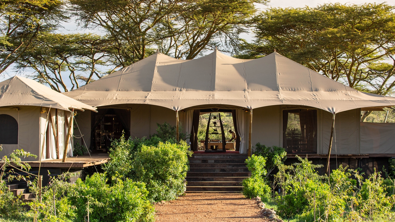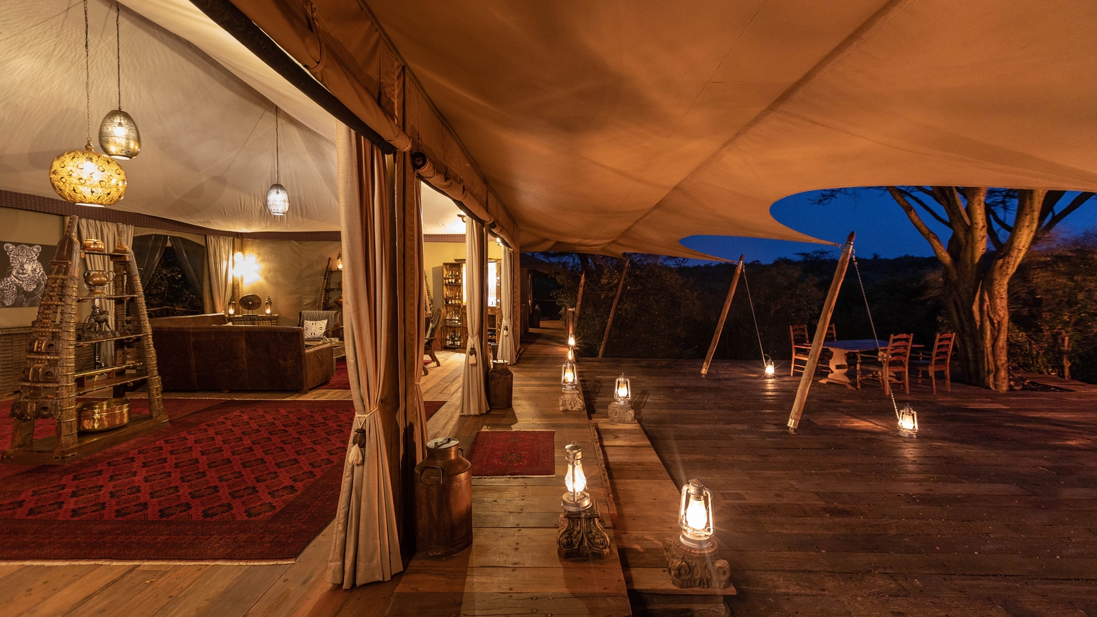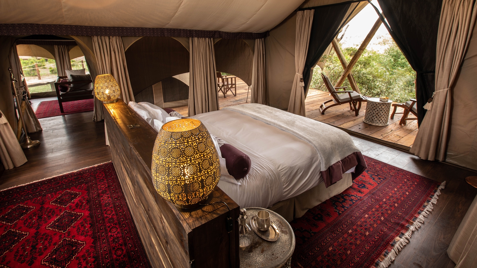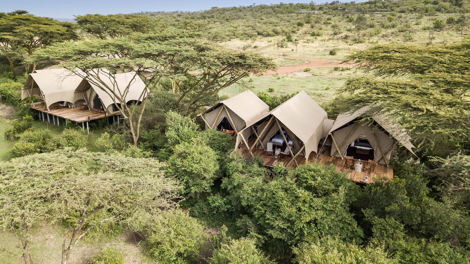 The intimate setting consists of just four guest tents, all enjoying the backdrop of the Naboisho Conservancy’s verdant landscapes. The tents are elevated to enjoy a treetop setting, connected by walkways to give a treehouse feel which is reflective of the camp’s ethic of exploration and adventure. The en-suite tents come with a private veranda, a dressing area and a small lounge, while the bathrooms are equipped with flush toilets, indoor showers and copper bathtubs.