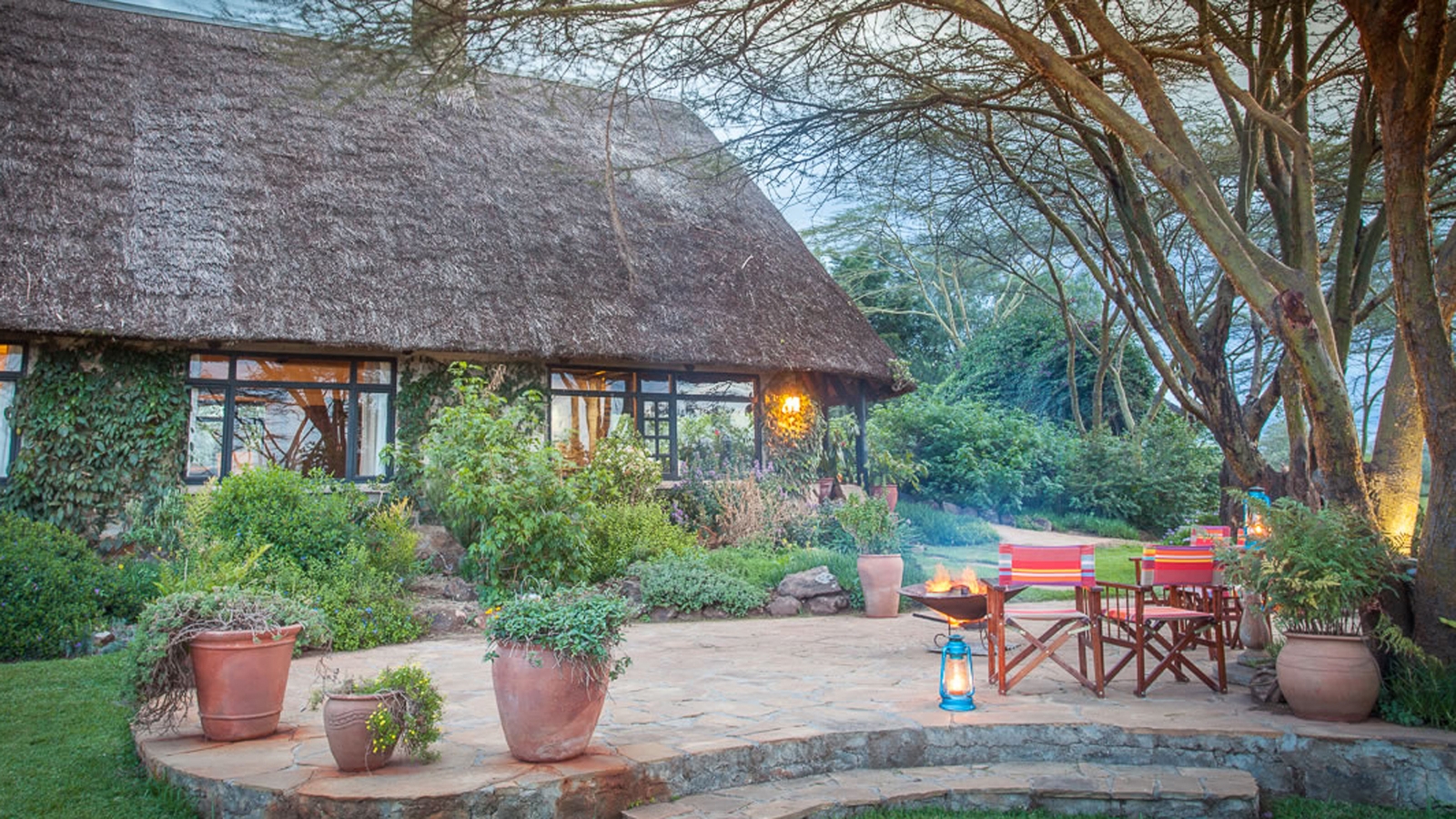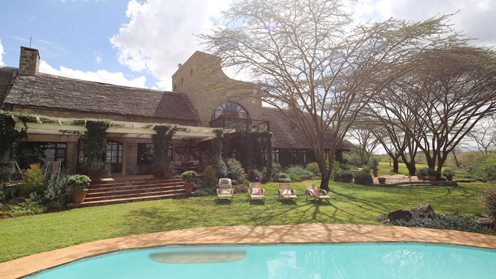 The 13 suites are spacious and luxuriously furnished, from the airy Terrace Room with its marble bathroom and private terrace, to the safari-style tented cottages. Or you could climb the spiral staircase to The Tower Room which boasts breath-taking views out over the park towards the Ngong Hills.