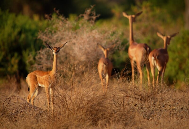 The Reserve sits to the north of the river, which separates it from Buffalo Springs National Reserve. As well as providing an invaluable water source for the Samburu herds, northern Kenya‘s least seasonal river also attracts a wealth of wildlife. The area is teeming with plains game as well as lions, leopards, cheetahs and elephants. Samburu is also home to species you won’t find elsewhere in Kenya, including the Grevy’s zebra, Somali ostrich and the gerenuk antelope.