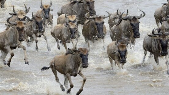 Every year between July and October, 1.5 million wildebeest and hundreds of thousands of zebra follow the rains through the Serengeti National Park in Tanzania and Kenya’s Maasai Mara. The Mara River on the border between the two countries marks the most treacherous point of the journey.