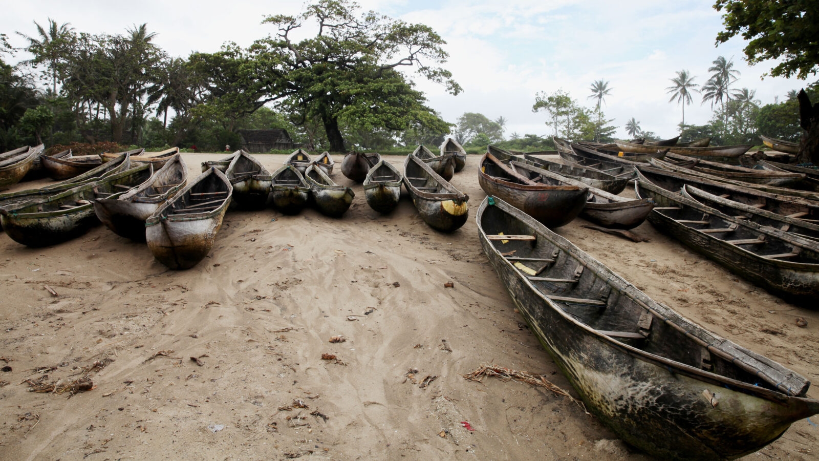 While the town itself is now largely a mining interest, poor infrastructure means the coastline just a short distance away sees life revert to far more traditional ways with fisherman hauling enormous fish into dugout canoes to be traded for sweet potatoes and rice with villagers walking down from the hills.