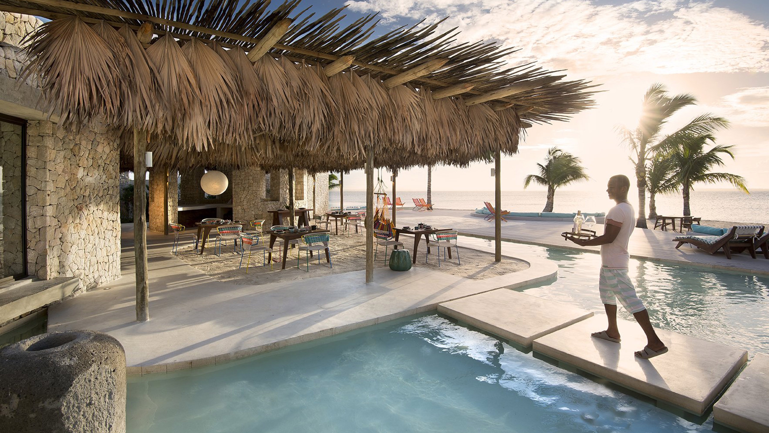 The main village, or piazza, is the heart of the lodge with its spectacular infinity pool, rooftop bar and three dining settings; a beach pizzeria, lounge and an Italian-inspired grotto and cellar.