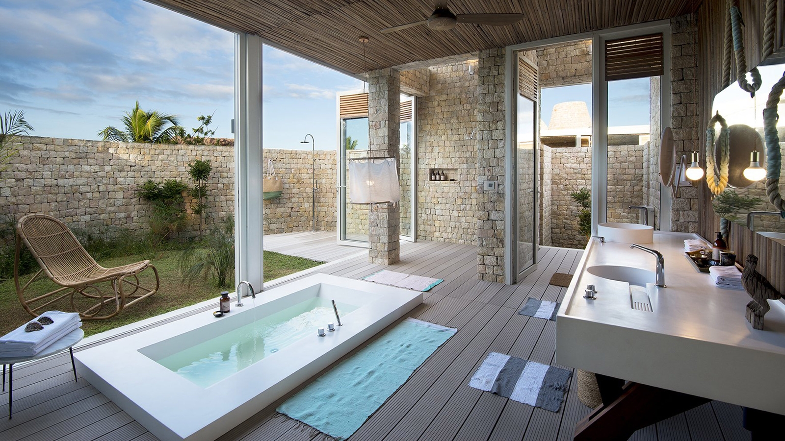14 vast villas line the western side of the island, just a few steps from the beach, for fabulous Indian Ocean sunset views and come with one, two or three bedrooms as well as a kitchenette, lounge, private deck and pool. Muted tones of sand, wood and water are reflected in the modern design alongside local materials and handcrafted pieces.