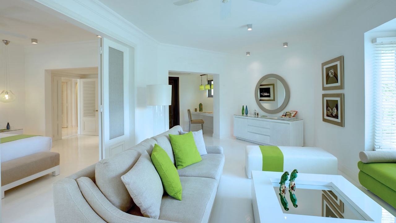 The 186 rooms were designed by Kelly Hoppen. There are a variety of suites and villas to choose from, with ocean, garden, beach or pool views. Interiors are contemporary and uncluttered, with bright colour accents.