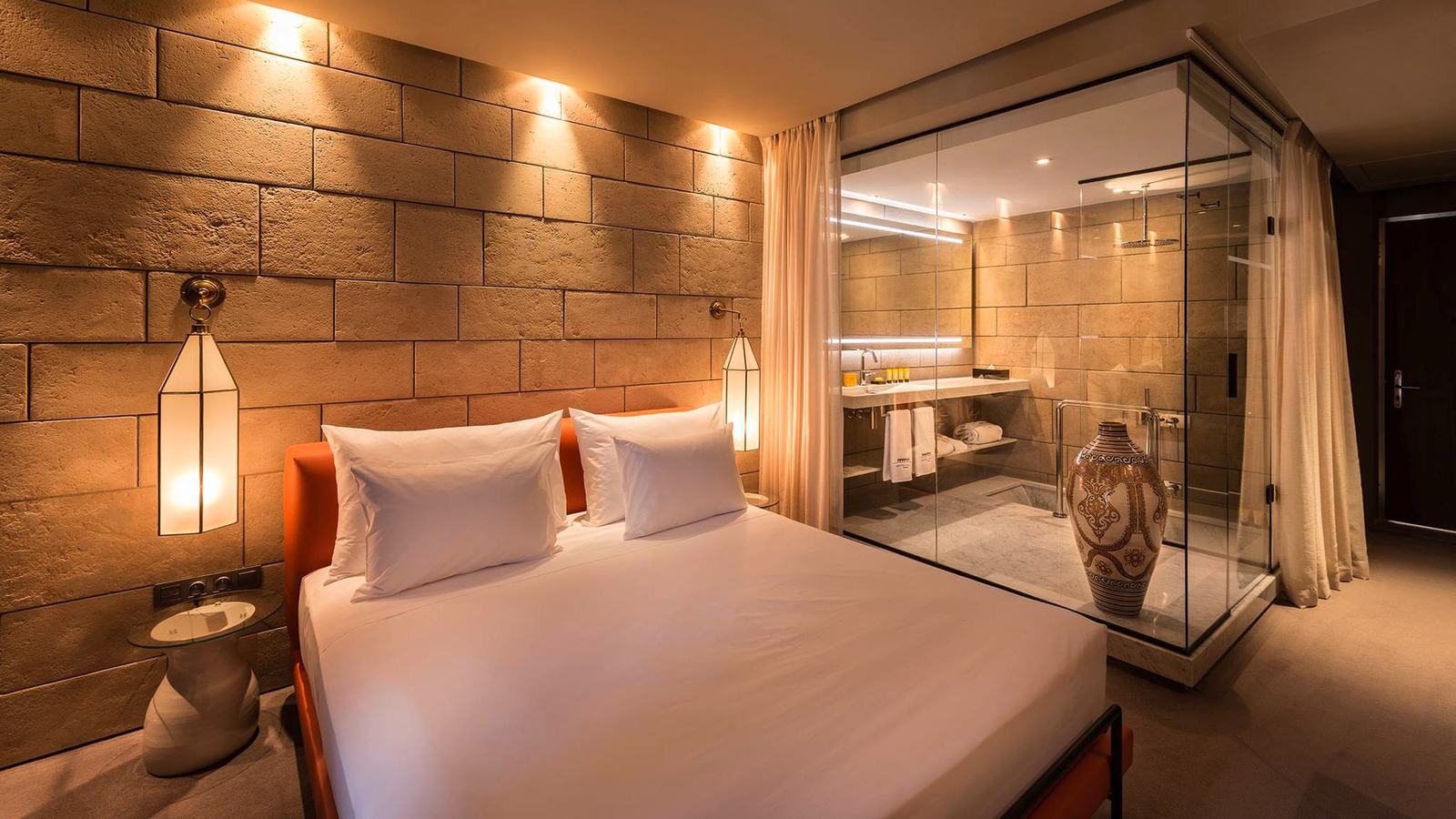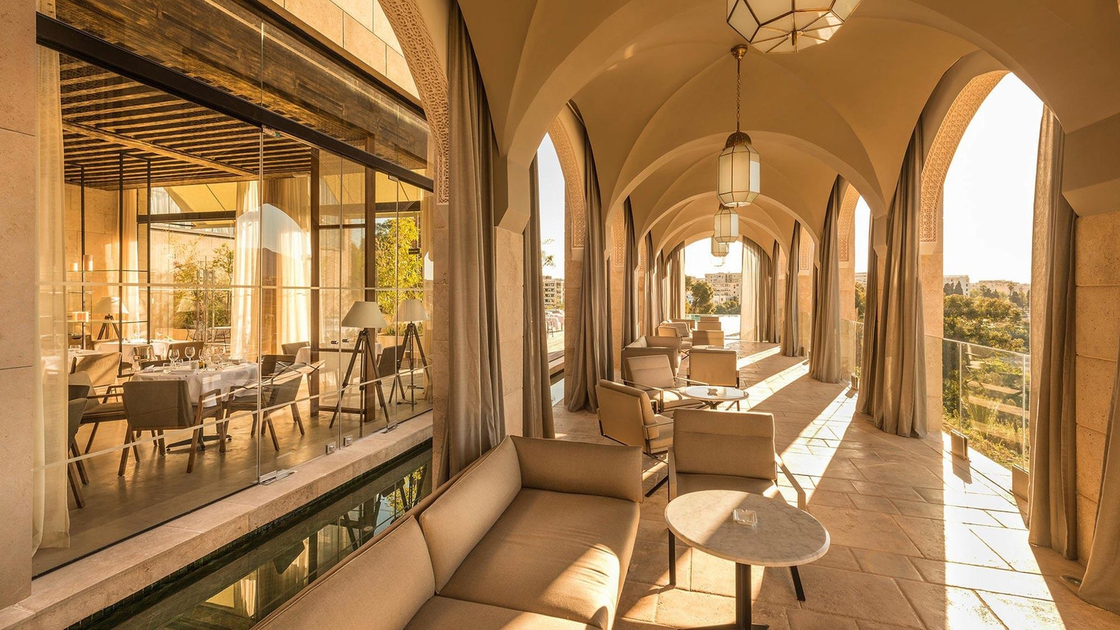 Great arches, mirroring the former façade, shade colonnaded pathways that lead into lush atriums and to 50 stylish rooms and suites, some of which have their own private terrace area.