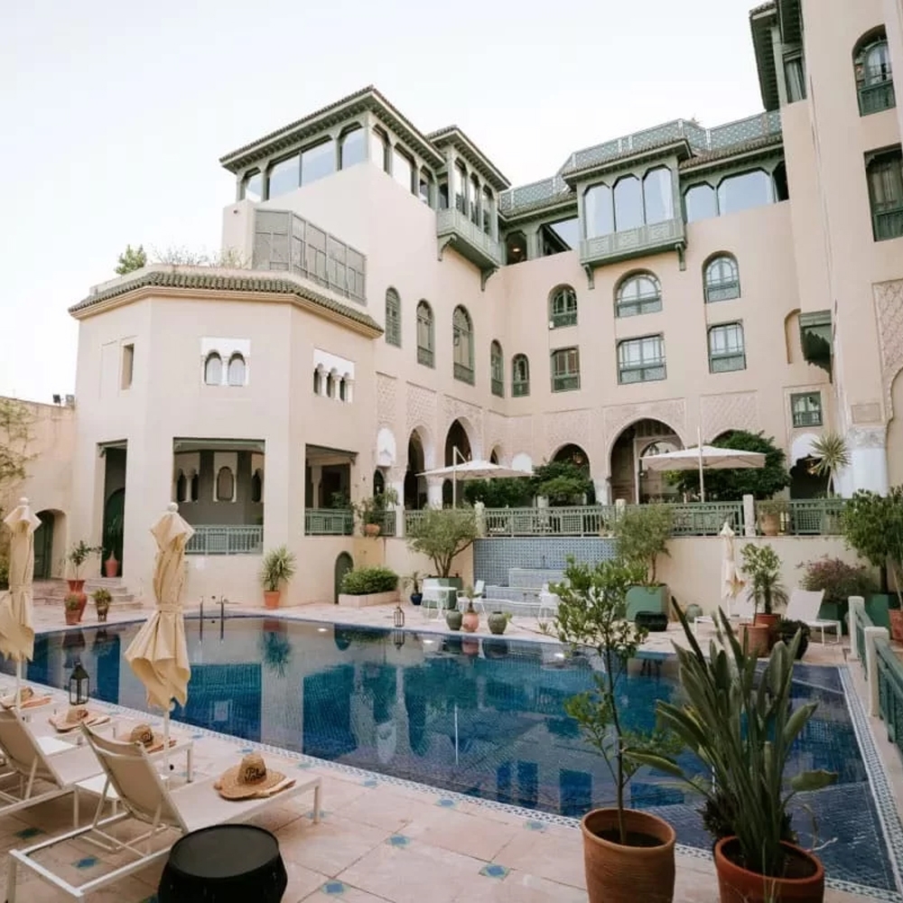 There are 31 chic and unique individual suites featuring Moroccan craft details, a spa and a swimming pool with one of the best views in the city. There are also two bars and two restaurants, Restaurant L’Amandier and Rooftop Garden where you can find gourmet Moroccan and Mediterranean cuisine. The Golden Bar and the Grand Patio and Pool Tea Room invite you to unwind and enjoy a refreshing drink with friends when you’re taking a break from exploring the city.