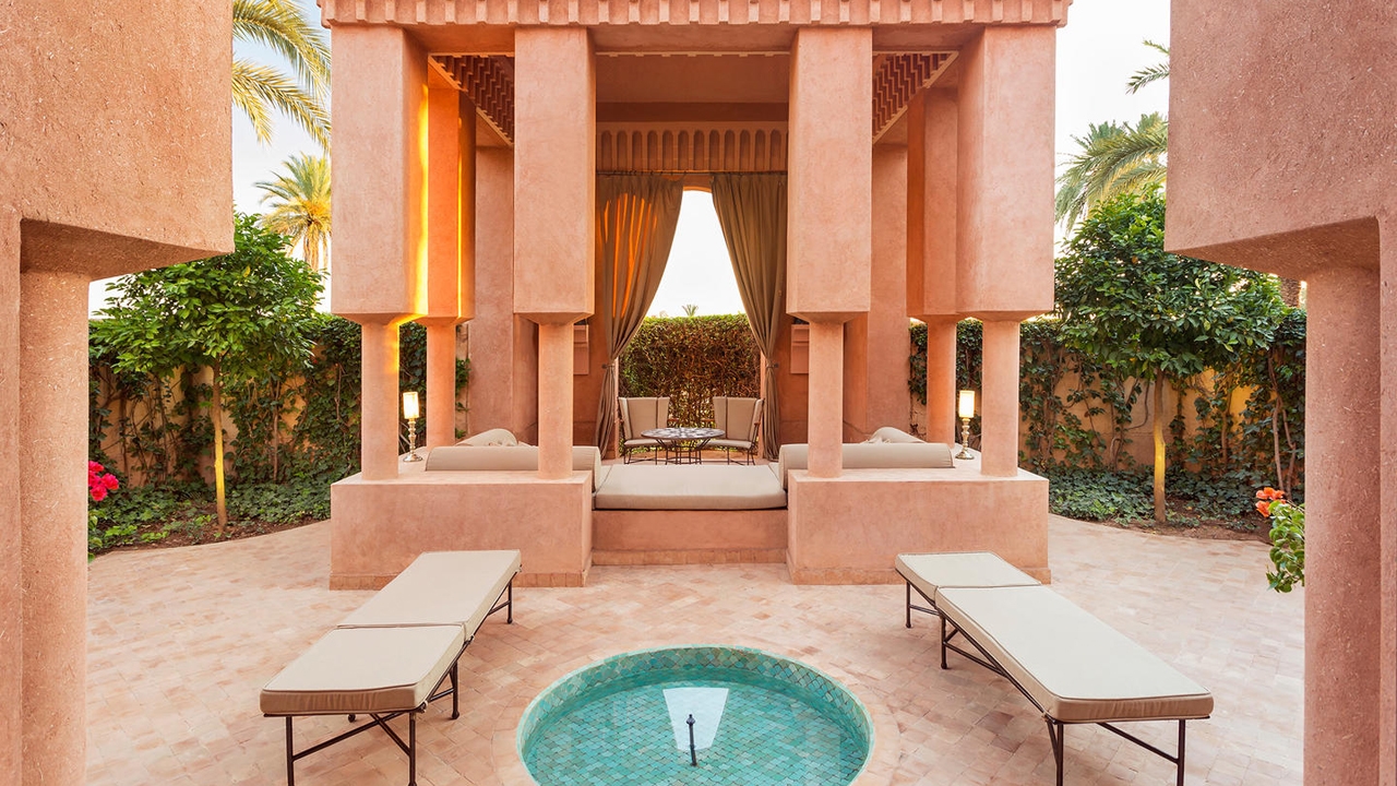 Set in its own expanse of gardens, Amanjena’s architecture has been inspired by the rose-hued buildings of old Marrakech. Shaded courtyards, vaulted ceilings and petal-strewn fountains invite you to relax and drink in the views out across olive groves and palms towards the High Atlas Mountains. The spacious standalone guest pavilions and maisons boast private gardens and some have private pool. The elegant dwellings have been designed to create a cool oasis for you, think scattered Berber carpets, zellij-tiled floors, candle lanterns and high ceilings.