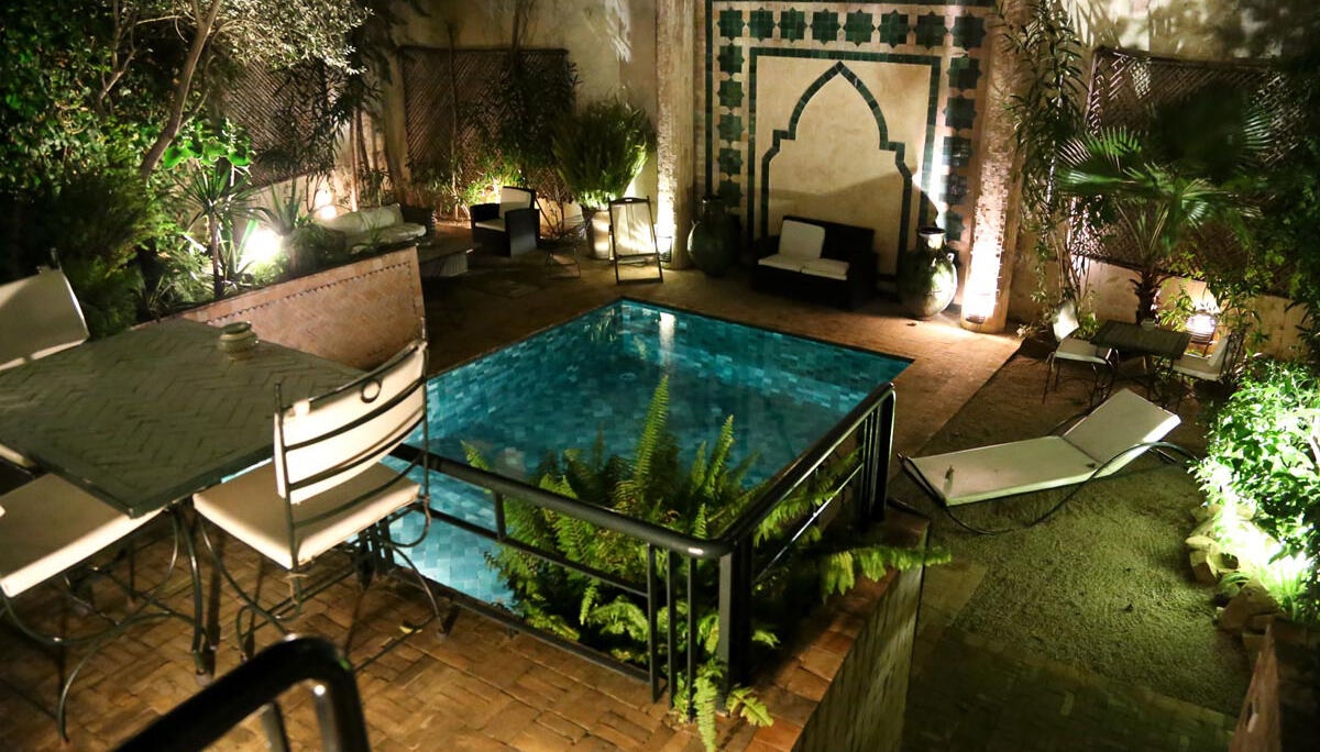 The garden, filled with palm, rubber and orange trees, is a beautiful space in which to relax and features a small but lovely swimming pool. The rooftop terrace is the perfect place to enjoy a mint tea as you watch the sun set and enjoy the warm sea breeze.