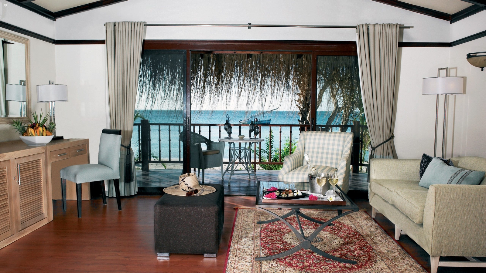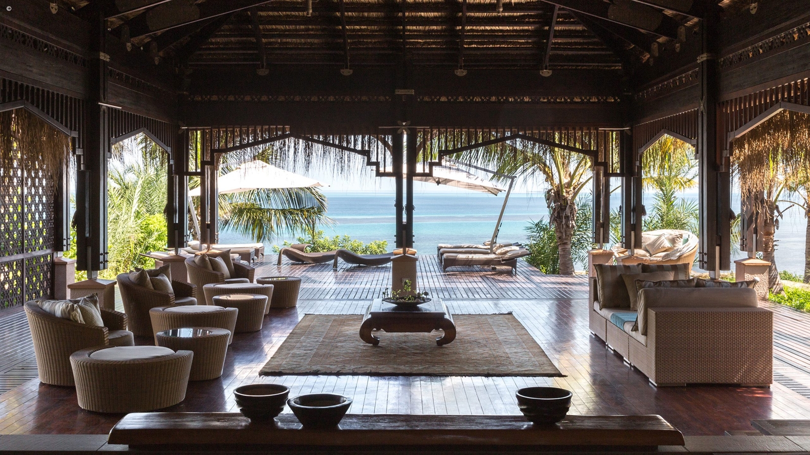 44 beach, sea view and pool villas come in a range of sizes, some more secluded for honeymooners and others larger – ideal for families or friends. Constructed from indigenous materials such as reed, soft fringed thatch and wood, the villas sit back amidst the unspoiled tropical surrounds.