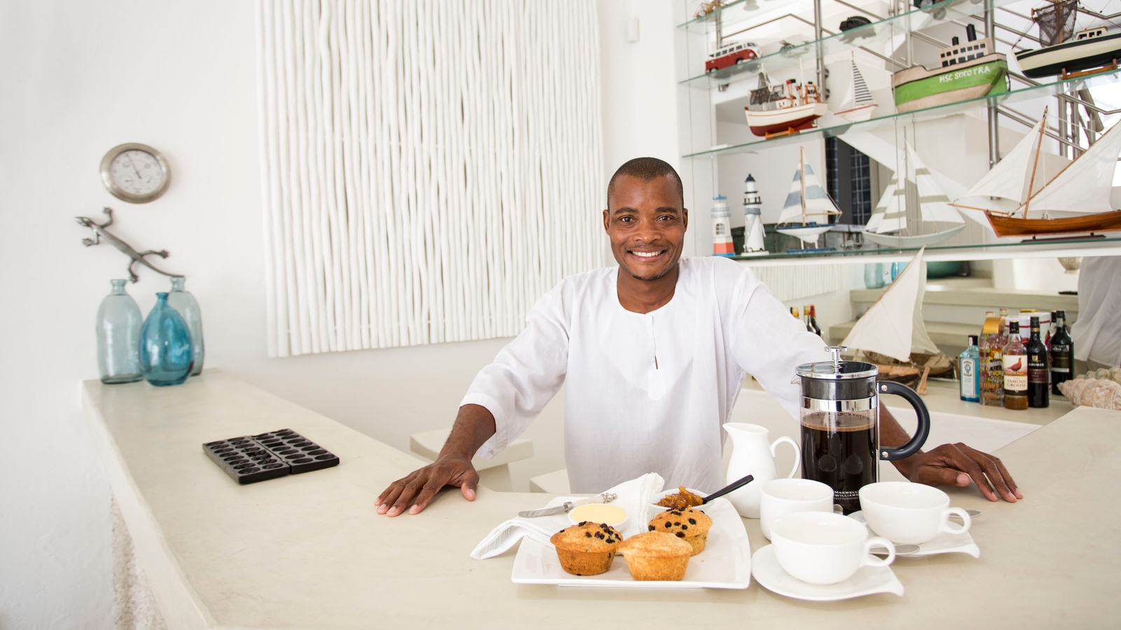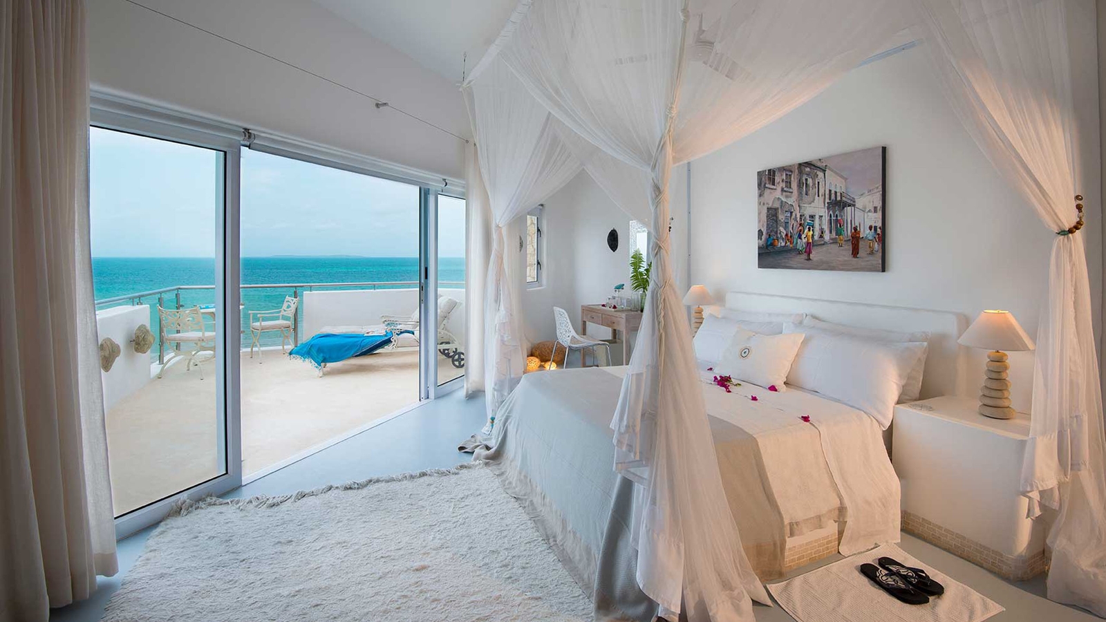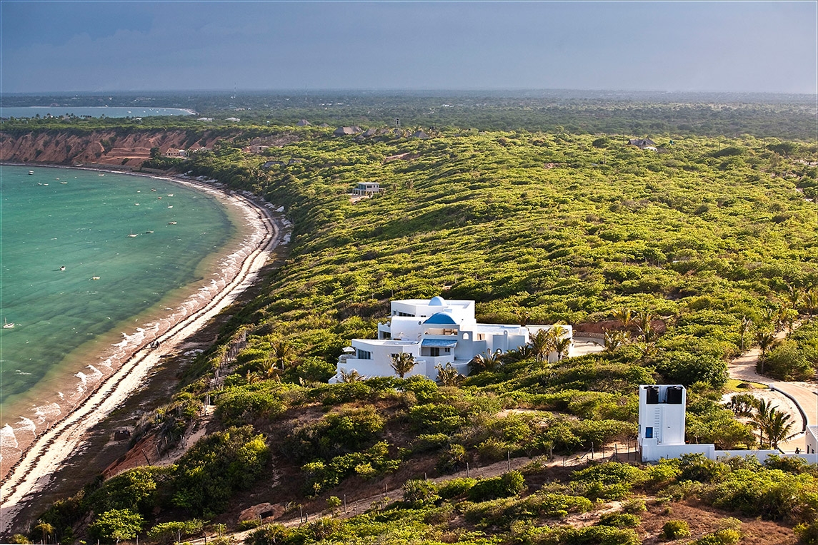 The clean design of the luxurious Santorini Mozambique reflects the pale sands of Vilanculos Bay and the hue of the sea it overlooks. White washed walls, touches of blue and several airy levels evoke images of idyllic Greek islands.