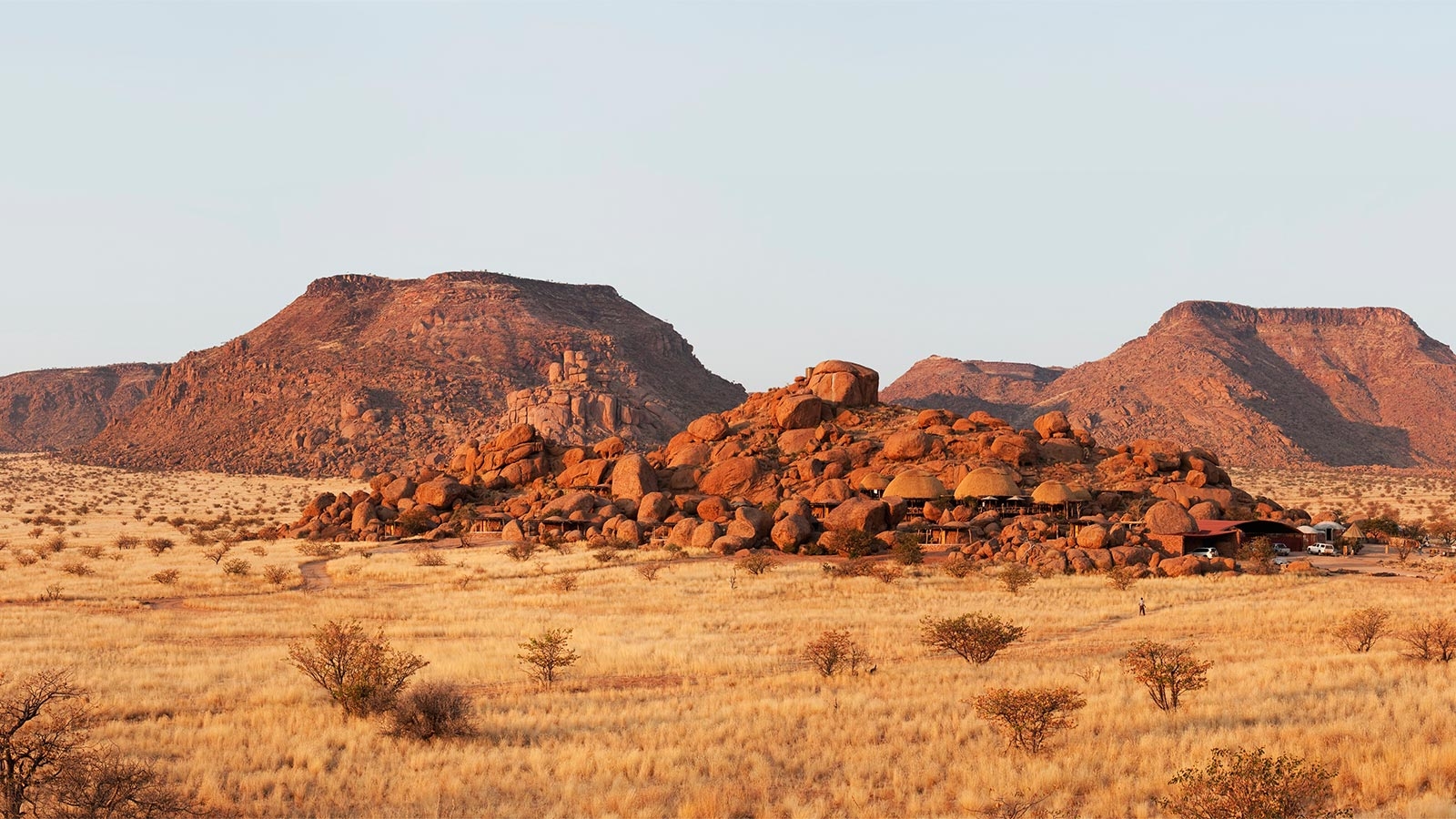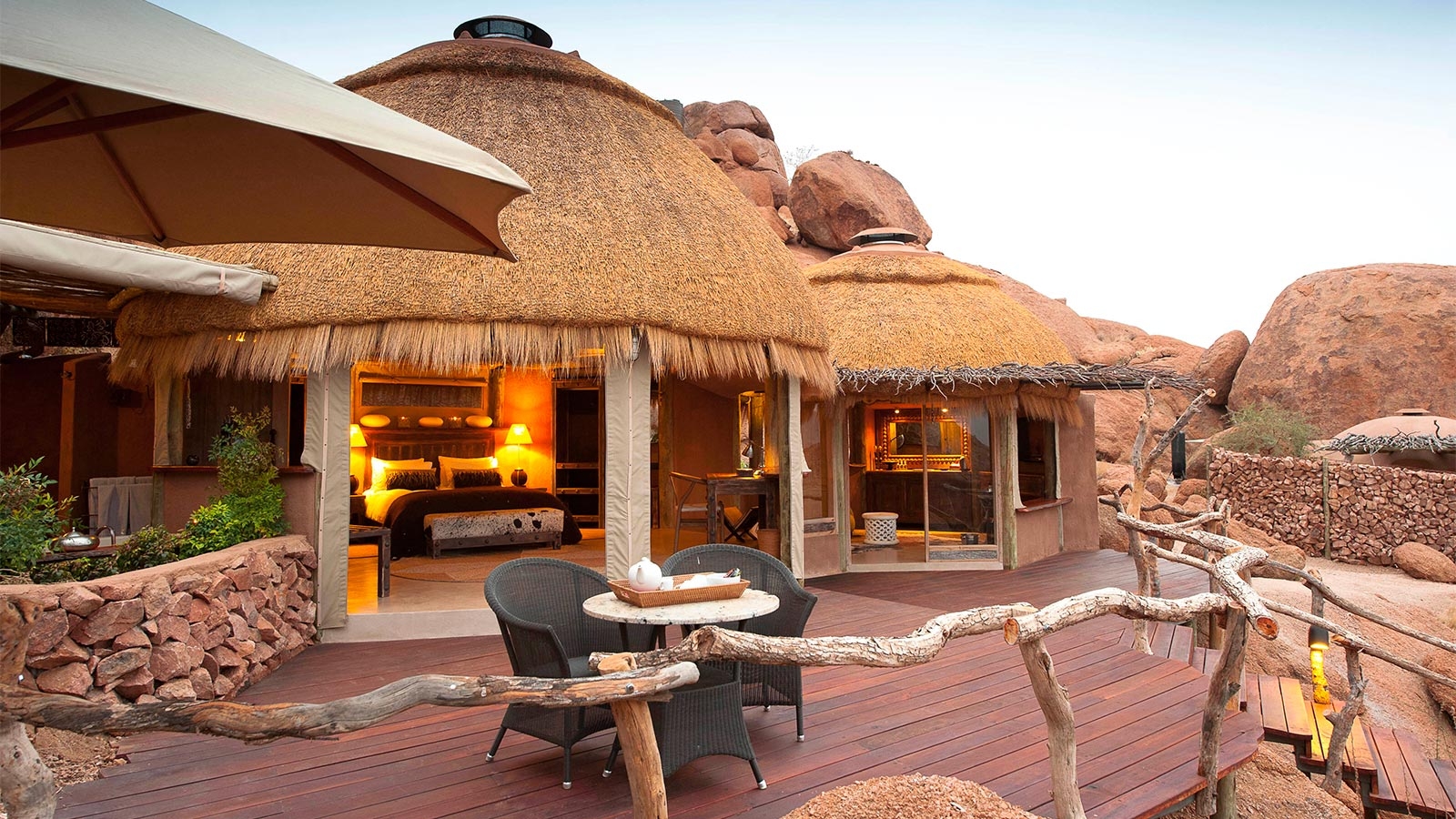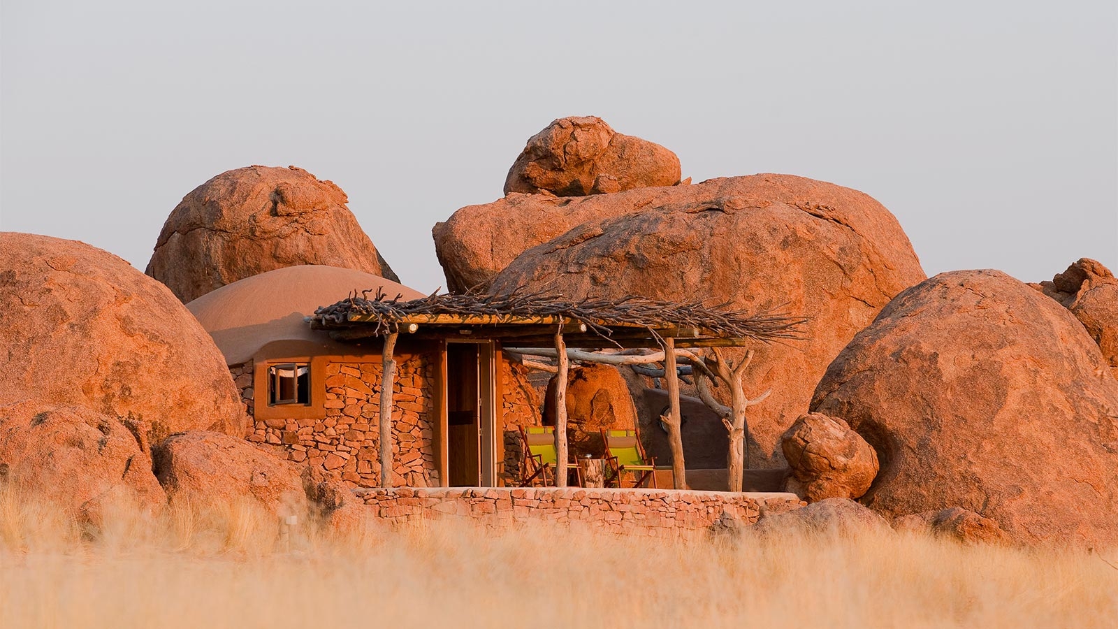 Huddled among – and even built around – huge orange boulders of a rocky outcrop in the dry grasslands of the Aba Huab Valley, Kipwe is a gem of an eco-friendly camp.