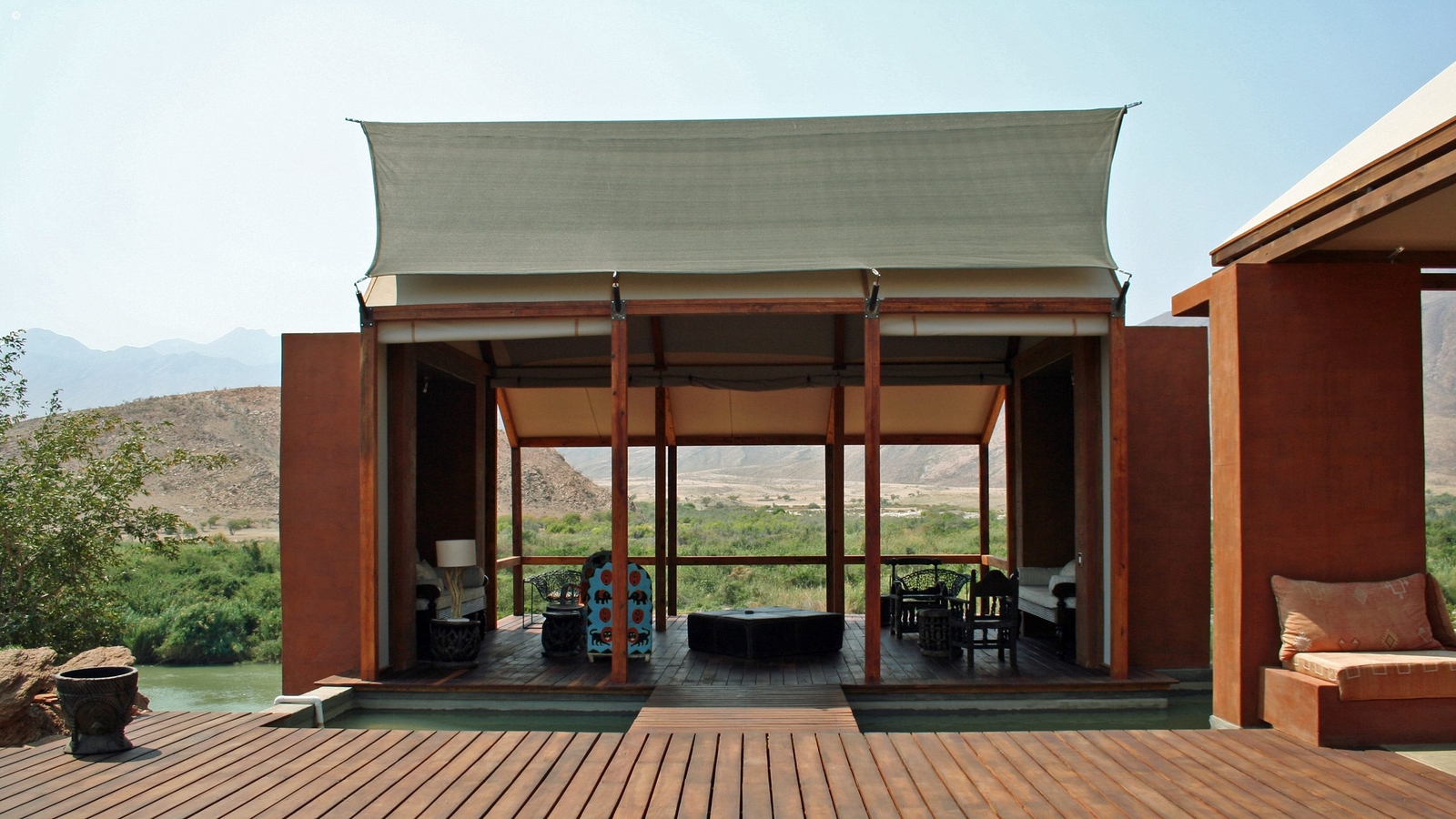 Scaling a ridge in the Marienfluss Valley and its central lodge built above the rapids of the Kunene, this is wild luxury at its best. The views are staggering with the colours constantly shifting into new ones depending on the time of day. Seven standalone wood and canvas rooms envelop you in the arid beauty at the same time delivering fine linen, a private terrace, indoor and outdoor showers, and a naturally stylish and eco-friendly ambience.