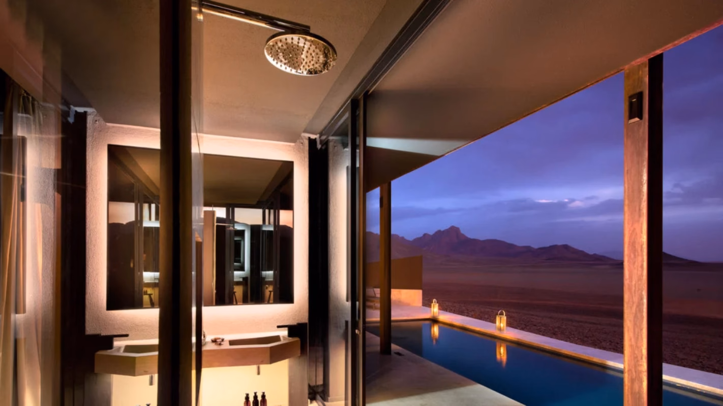Cradled against ancient mountains, overlooking the stark yet beautiful Namib Desert