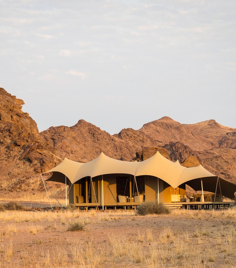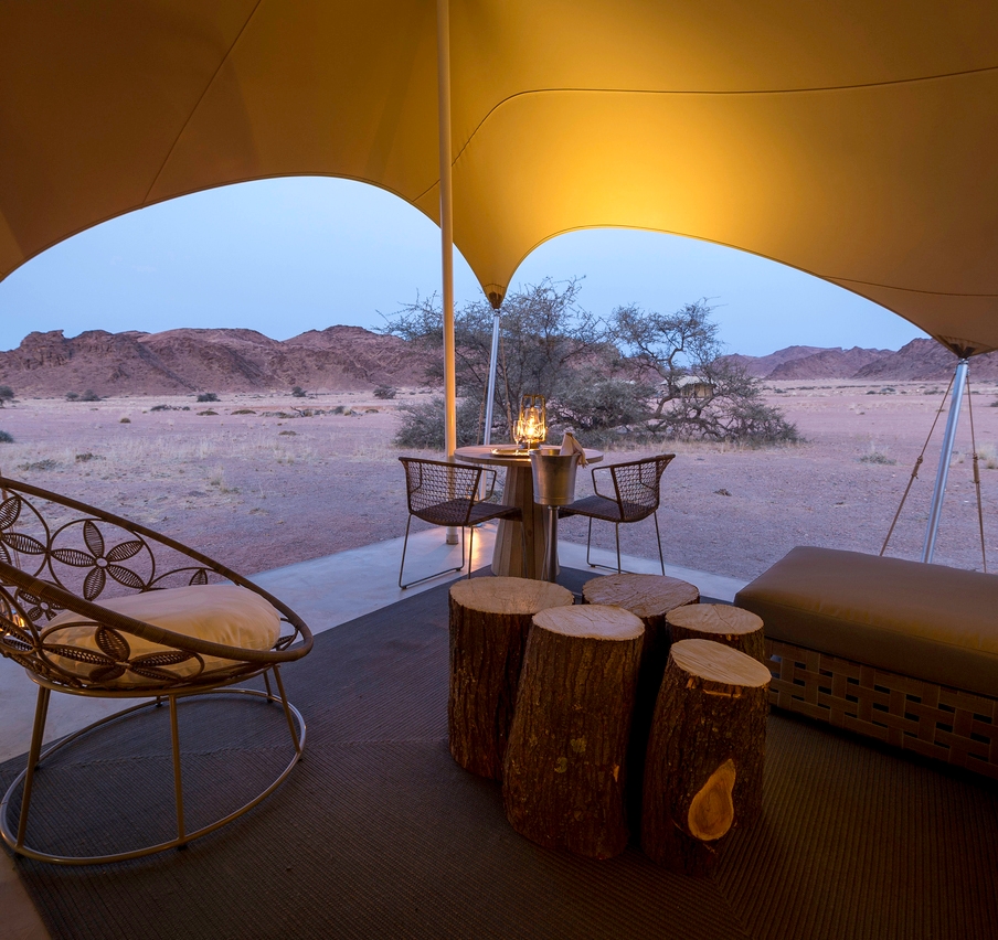 Placed at the confluence of two tributaries in a broad valley of the Kaokoveld Desert, the camp offers an unforgettable gateway from which to experience both the thrillingly desolate Skeleton Coast and the private Palmwag Concession, alive with desert-adapted wildlife.