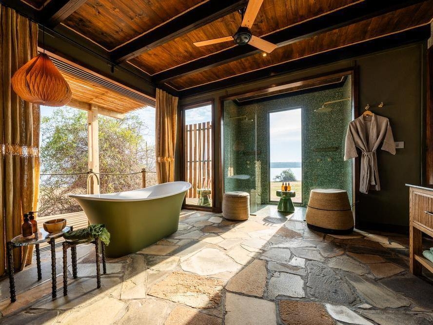 The camp comprises a stunning four-bed villa and two twin suites, each elevated to maximise the panoramic views over the lake. Private plunge pools invite moments of quiet reflection and the villa’s multi-purpose room is adaptable as a gym, office or family space. Personalised in-villa dining and a dedicated private guide transform each stay into a deeply personal journey, allowing you to explore the wilderness at your own pace. Embark on a morning game drive, glide silently through the waterways on a boating safari or set out on a guided nature walk.