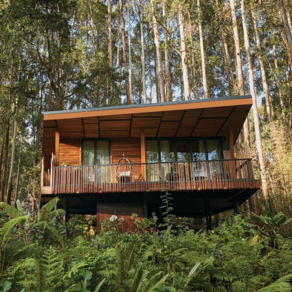 An outstanding addition to One&Only’s collection, this cradle of meticulously curated design blends into the ethereal backcloth of mist-laden jungle and blue-hued peaks, presenting 21 lodges and suites. The luxurious accommodation, balanced on wooden poles above the botanical garden, places you in the midst of the Virunga rainforest, with sprawling viewing decks, outdoor tubs and floor-to-ceiling windows. Tasteful interiors draw on varied wooden features, warm colour schemes, patterned materials, and some options offer fire-pits and private pools.