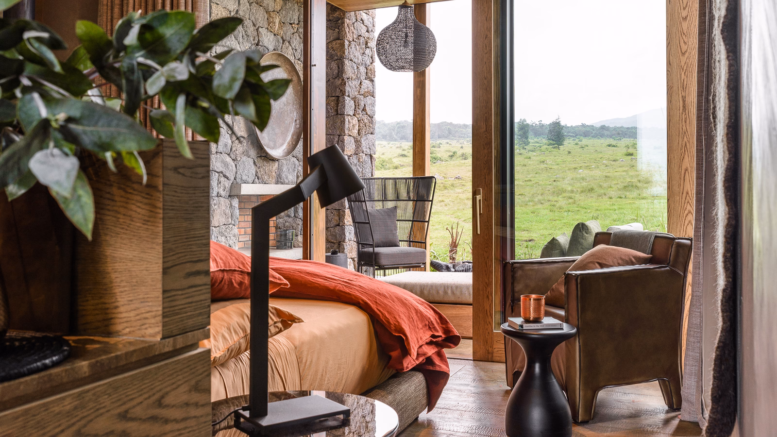 Located in a prized 178-acre parcel of lush meadows and wetlands right on the edge of Volcanoes National Park with magnificent views of the Sabyinyo, Gahinga and Muhabura volcanoes, there are eight suites and a four-bedroom villa, Kataza House. Architects and interior designers are selecting locally sourced and produced materials while the local community has been engaged in building using traditional techniques. A light footprint is central to the project, embodying the gentleness and humility of the great silverback from which the lodge takes its name. Singita has a long-term approach to conservation, and part of the plan is to plant thousands of trees around the lodge.