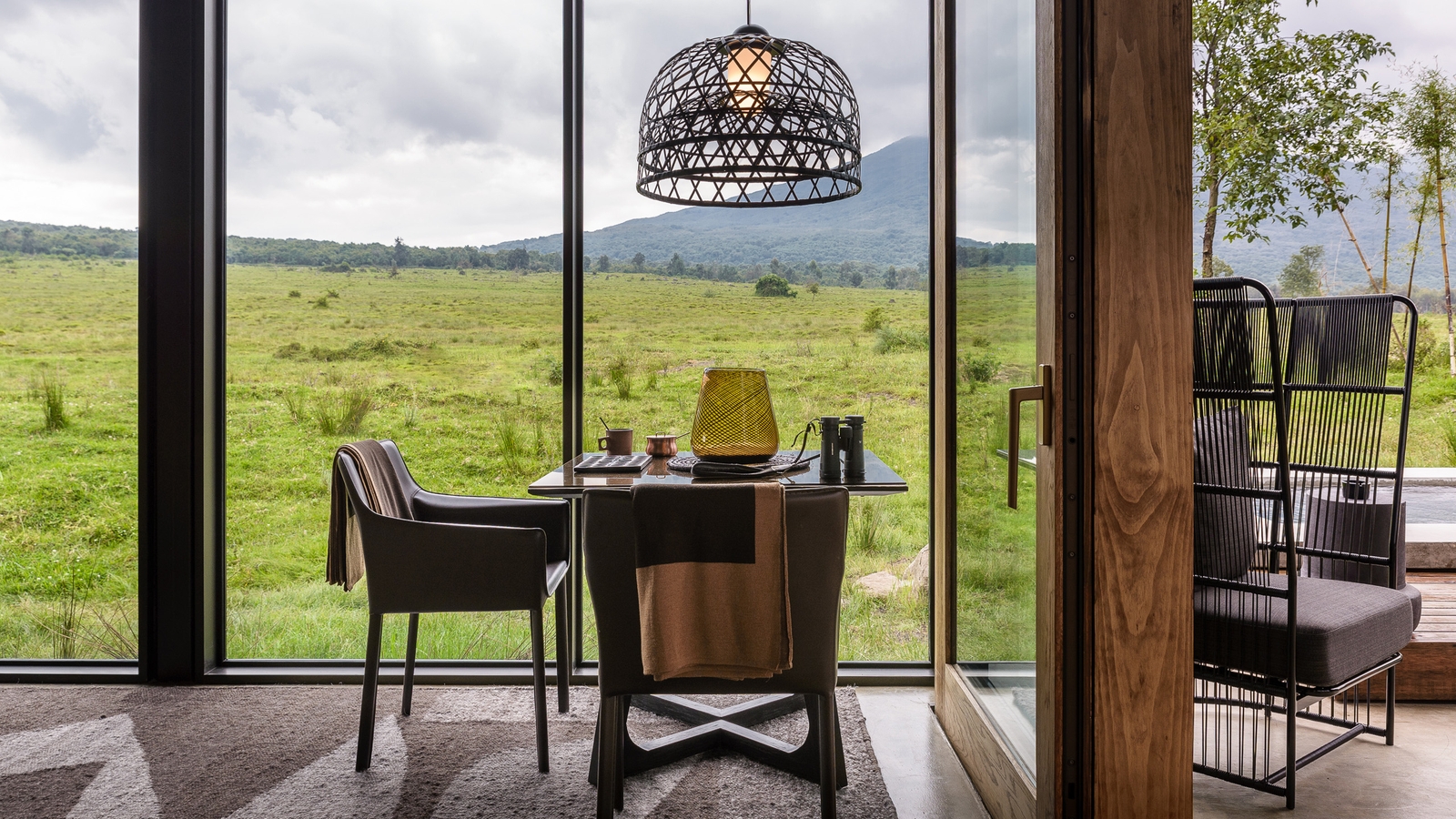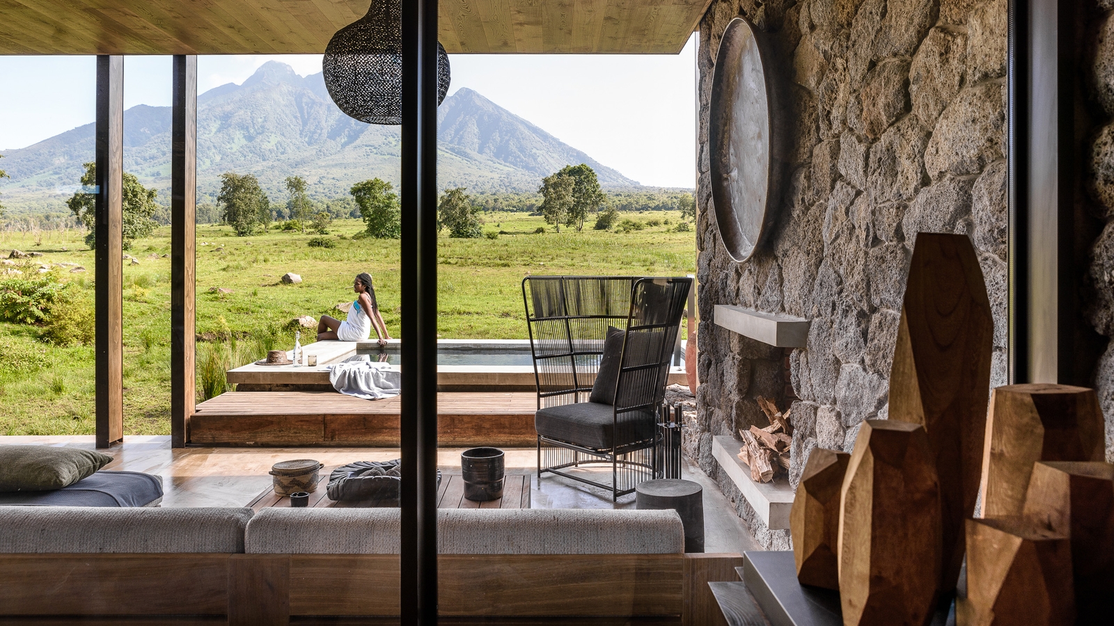 Located in a prized 178-acre parcel of lush meadows and wetlands right on the edge of Volcanoes National Park with magnificent views of the Sabyinyo, Gahinga and Muhabura volcanoes, there are eight suites and a four-bedroom villa, Kataza House. Architects and interior designers are selecting locally sourced and produced materials while the local community has been engaged in building using traditional techniques. A light footprint is central to the project, embodying the gentleness and humility of the great silverback from which the lodge takes its name. Singita has a long-term approach to conservation, and part of the plan is to plant thousands of trees around the lodge.