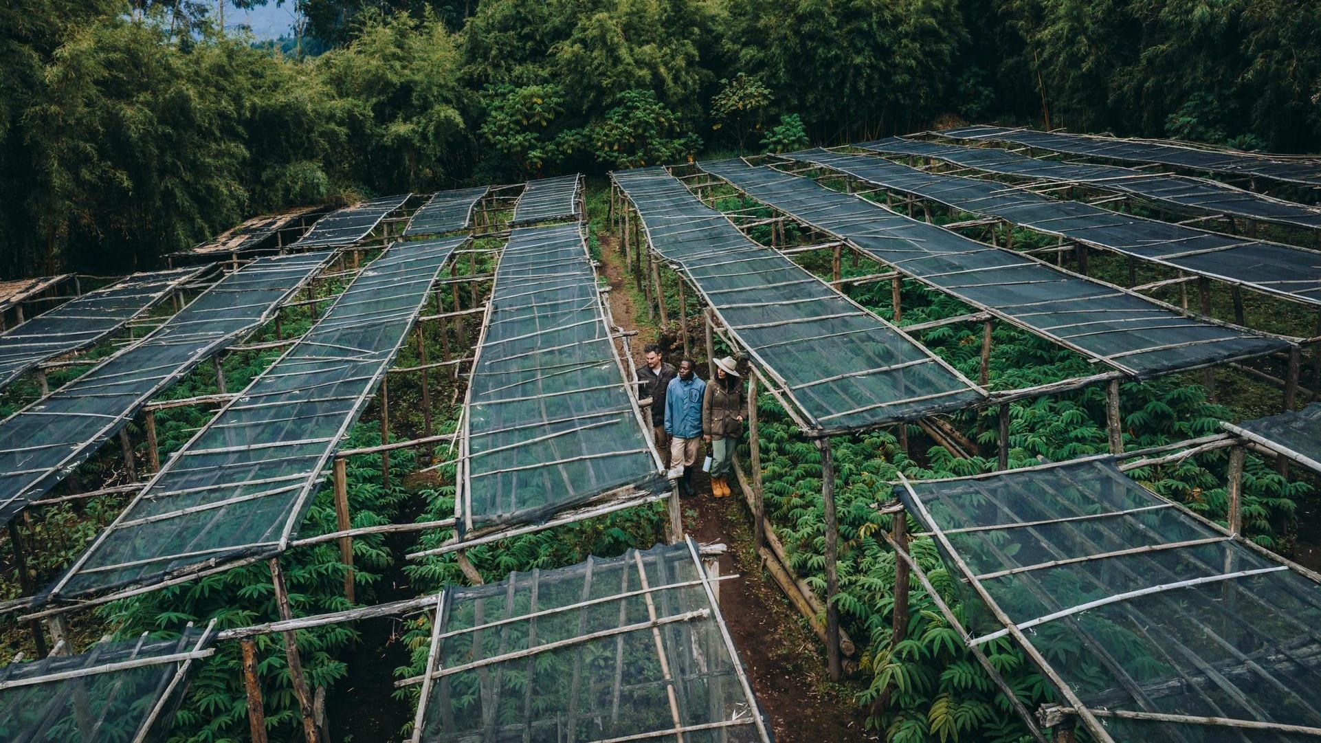 Marvel at the Virunga volcanoes from this elevated hillside reserve