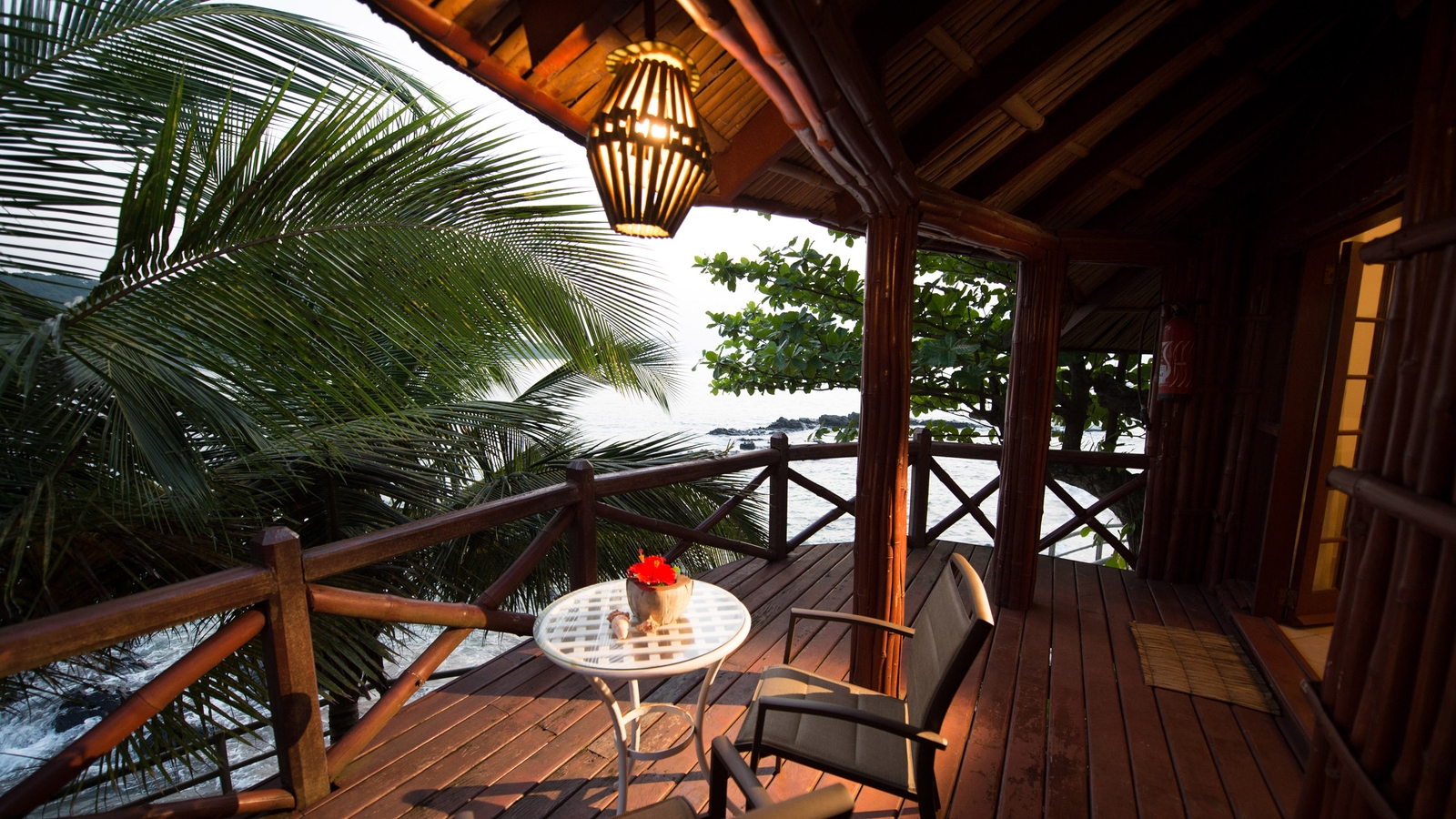 Breakfast can be enjoyed in your bungalow; otherwise, dining takes place at the charming Bom Bom Restaurant. The menu pays special attention to seasonal and local produce, and dishes range from local favourites to international fare. At low tide, on a clear day, you can enjoy your meal with a sea vista from a table set right on the beach.