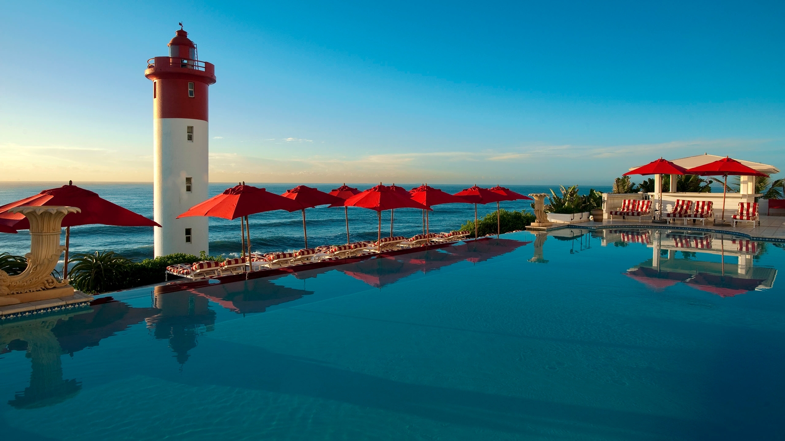 With an infinity pool that seemingly drops into the Indian Ocean beyond and under the watchful gaze of a traditional red and white lighthouse, Oyster box is your quintessentially colonial seaside hotel with an elegant modern polish.