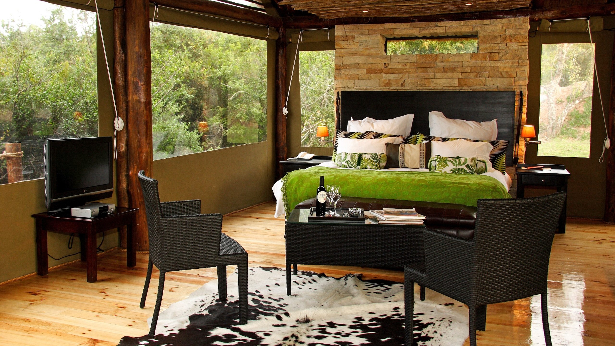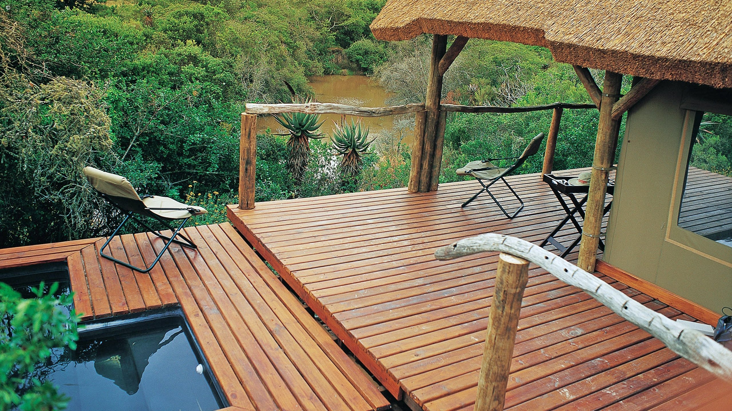 A true example of glamping (glamorous camping), the Bayethe Lodge’s 12 separate tents constructed with stone walls and thatched roofs feel very contemporary, secluded and have their own private decking with plunge pools.