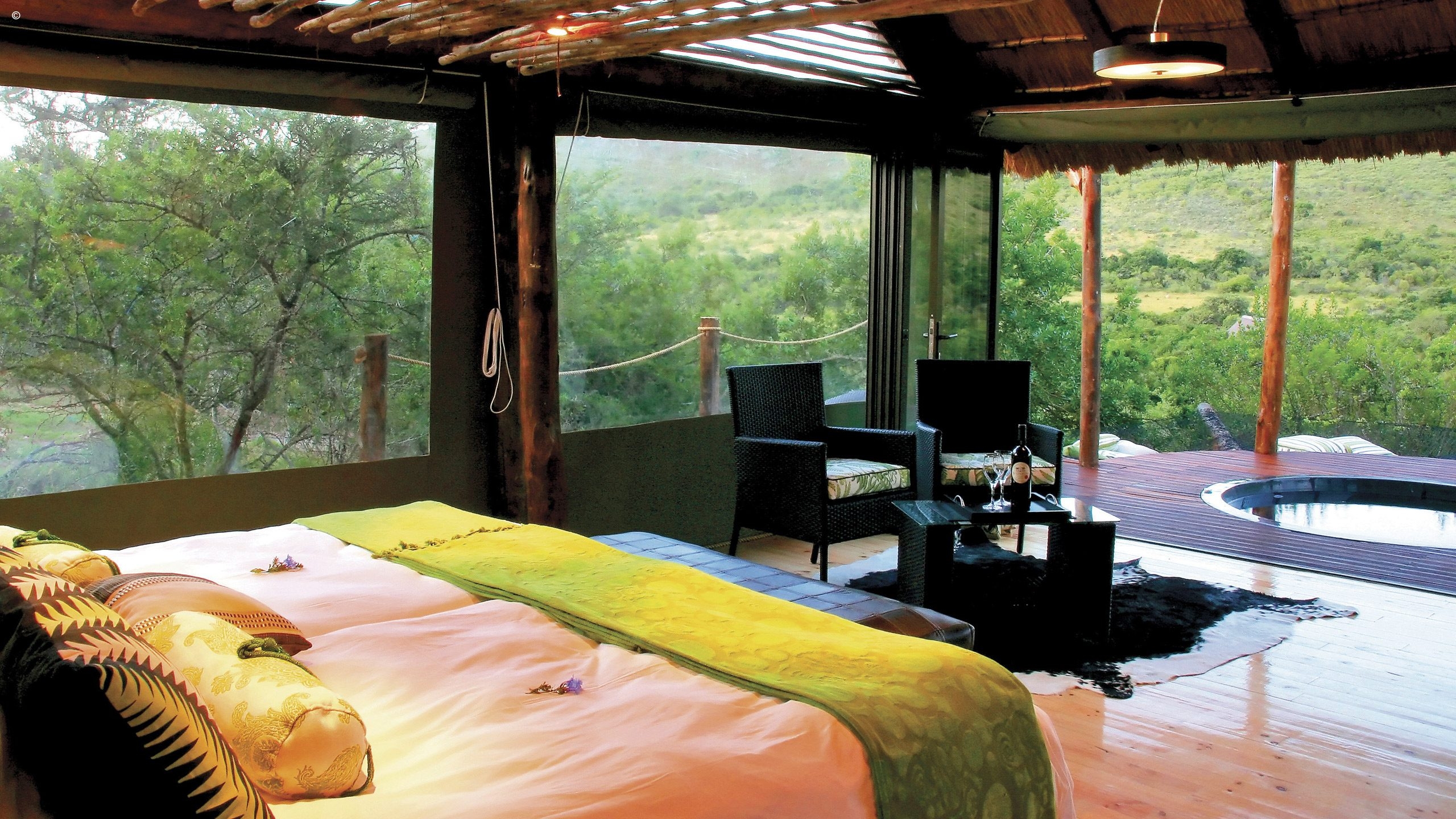 A true example of glamping (glamorous camping), the Bayethe Lodge’s 12 separate tents constructed with stone walls and thatched roofs feel very contemporary, secluded and have their own private decking with plunge pools.