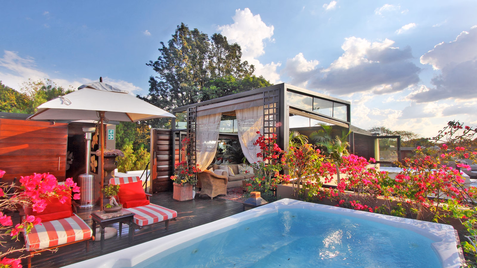 A warm, hospitable welcome awaits you at The Residence, located in the historic suburb of Houghton, which is also home to many famous residents including former President Nelson Mandela. The Residence exudes a charming air of quiet dignity, with an abundance of bougainvillea blossoms cascading down the terraced gardens.