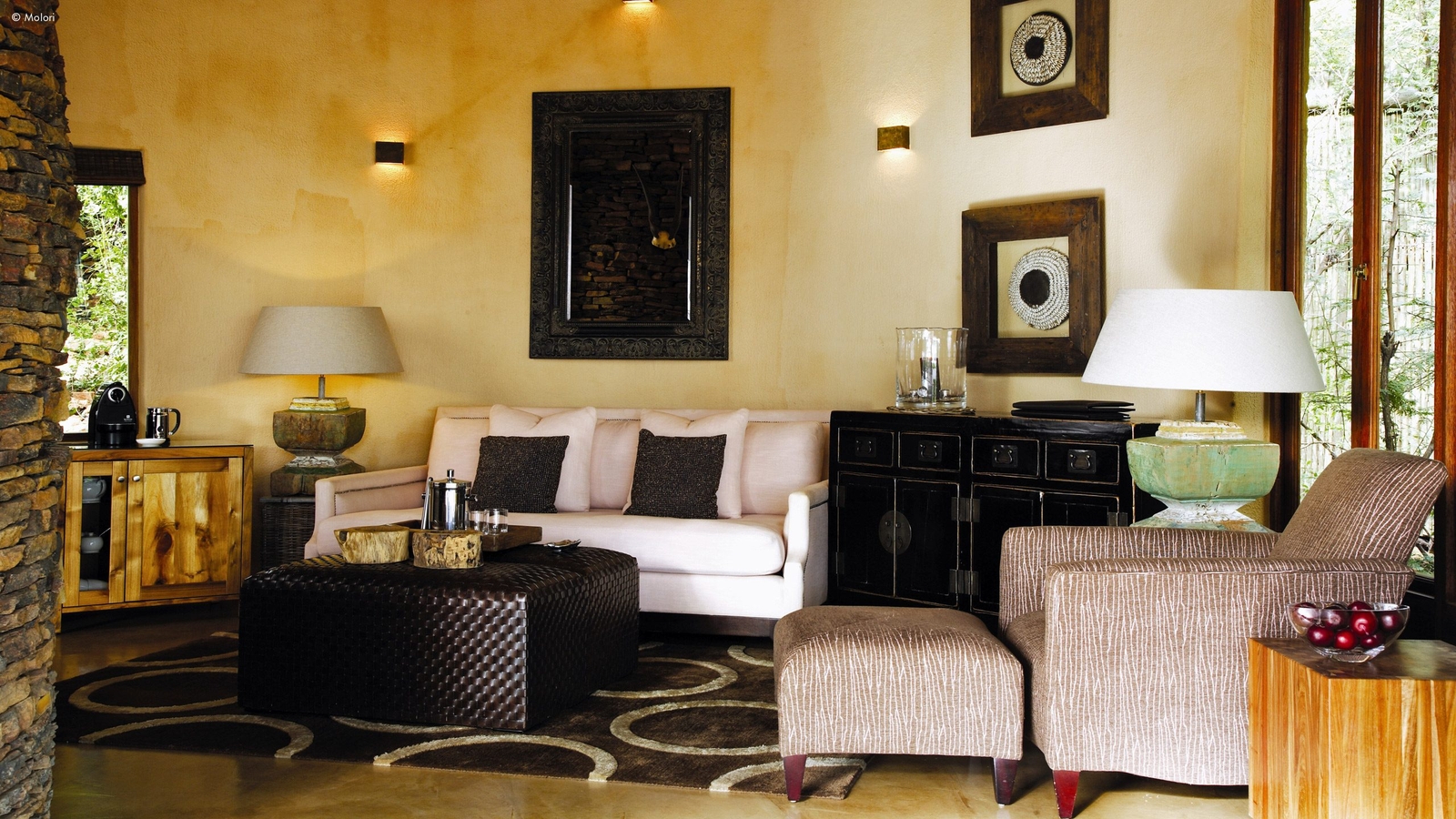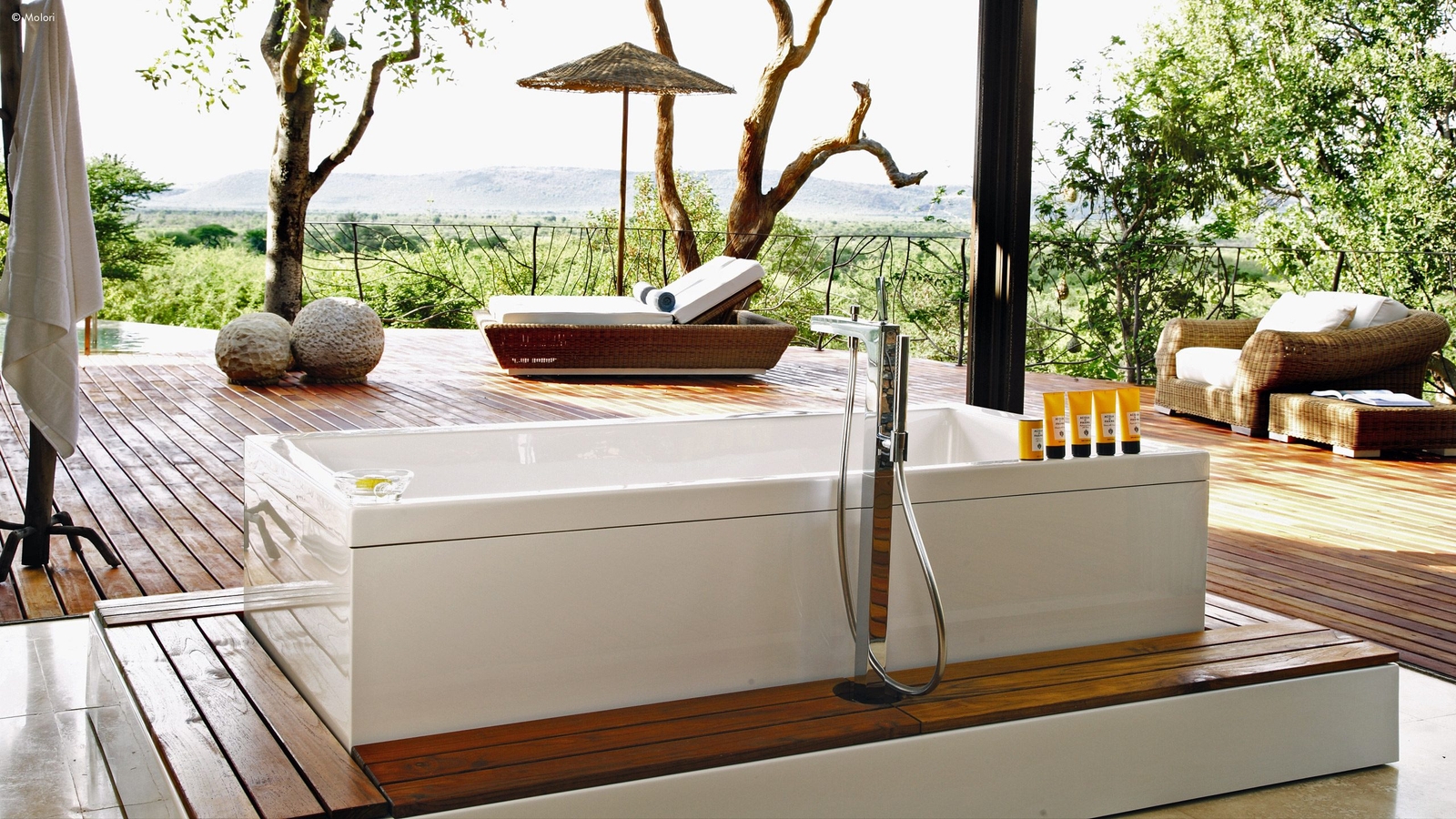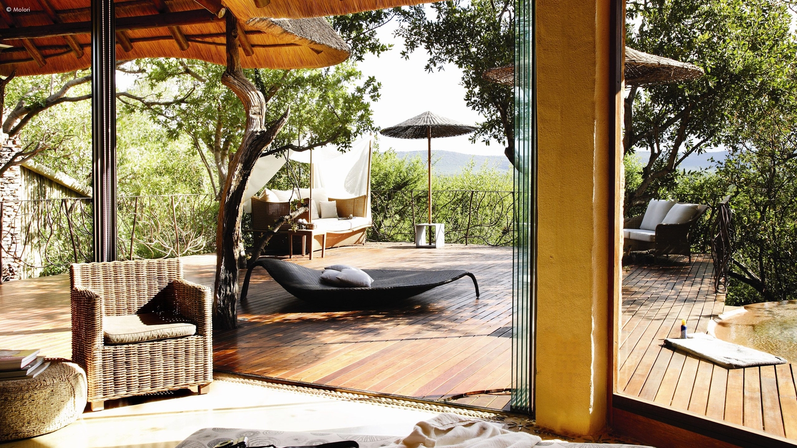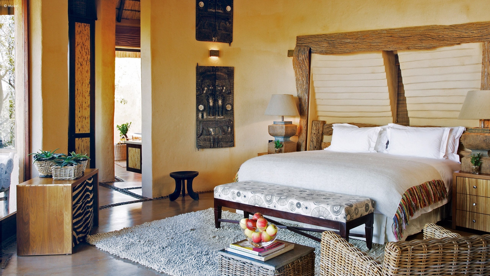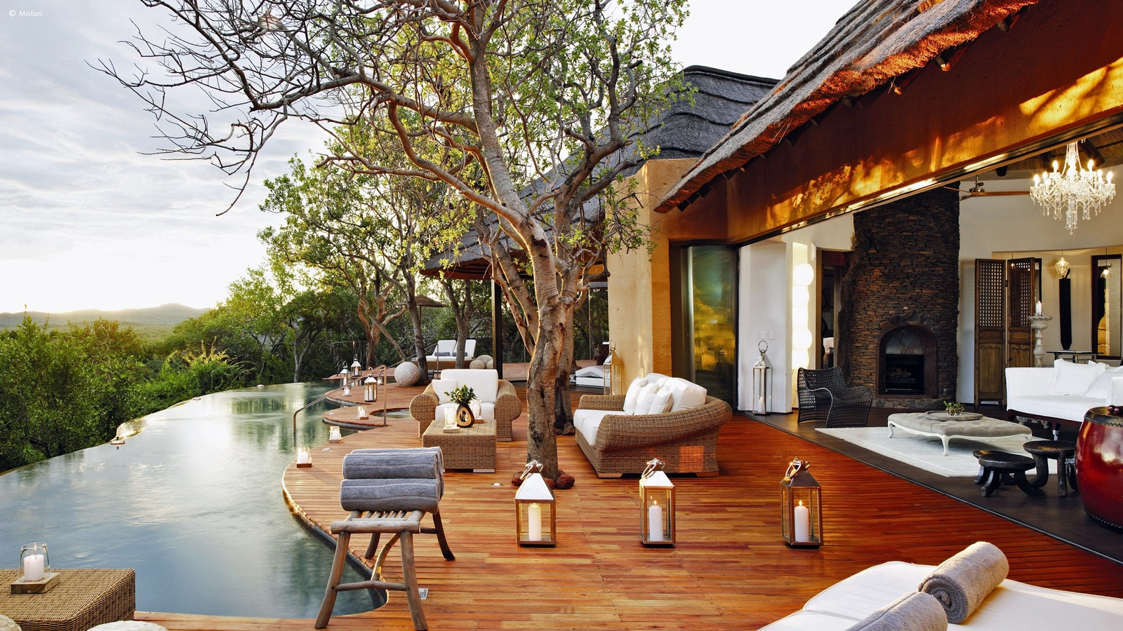 Molori’s five vast suites are distanced for more privacy and designed to the starry heights of infinite, open-sided African chic.