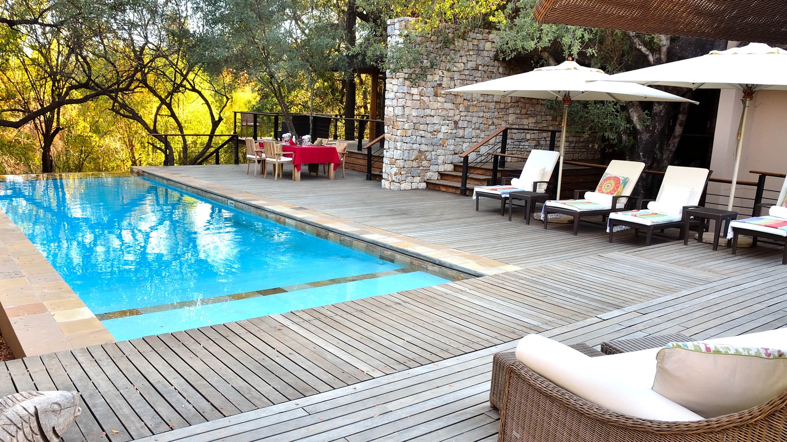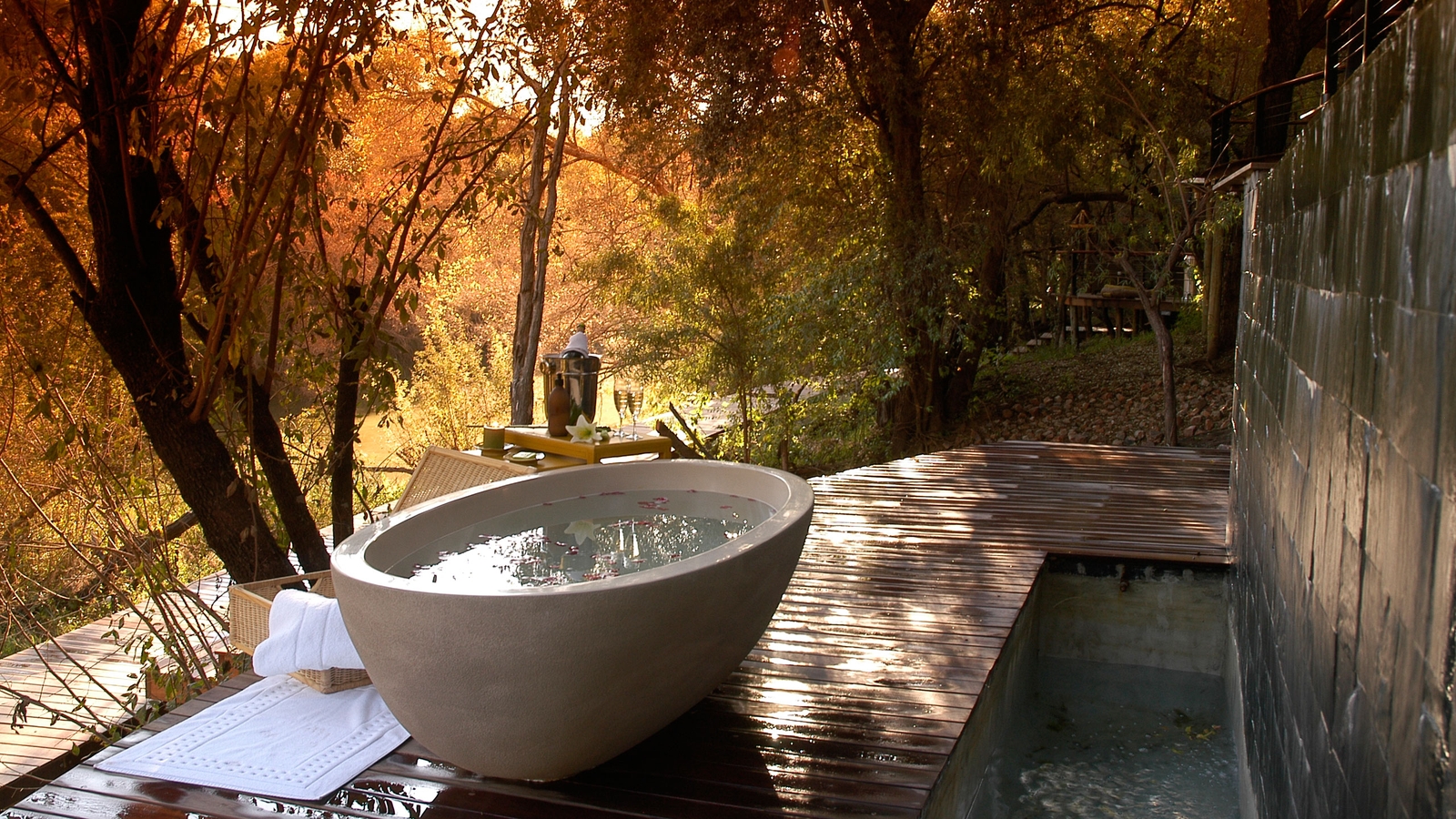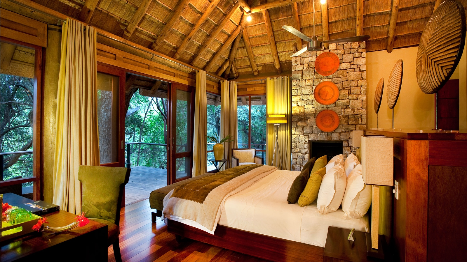 The wooden and glass structures are beautifully constructed as a blend of European and African styling, designed to blur the lines between indoors and outdoors. Lying in bed with the doors wide open, listening to the sound of nature as your personal team of eight discreet butlers wait on your every need.