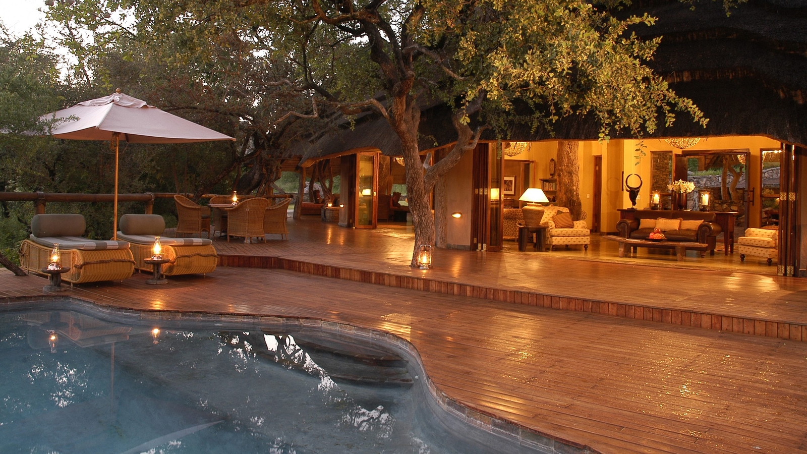 The main decking area of the lodge overlooks a watering hole and a small pool and comfy loungers makes it the perfect place to simply sit and marvel at the scenery and wildlife. The boma is a beautiful setting for your meals, where you’ll enjoy delicious cuisine under the shade of a giant fig tree. In the evening the twinkling of candles, lanterns and the night sky make dining here an unforgettable experience.