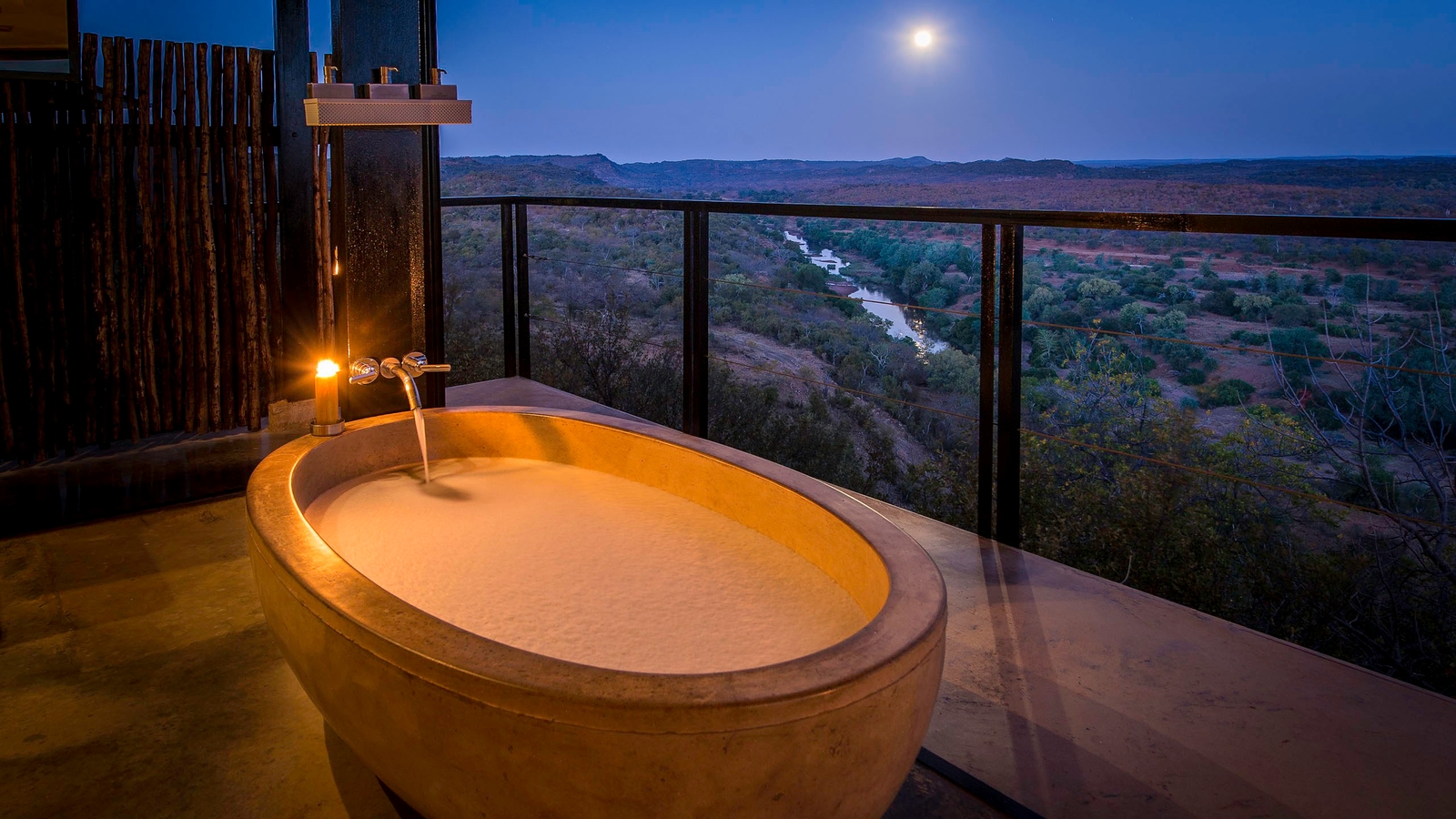 With such an elevated setting, each of the stand-alone luxury suites boasts stunning river, bush and valley views which can be enjoyed from an outdoor terrace. Adorned with the cutting-edge style of steel and concrete, these open-plan suites also feature award-winning bathrooms with stone baths and open showers.