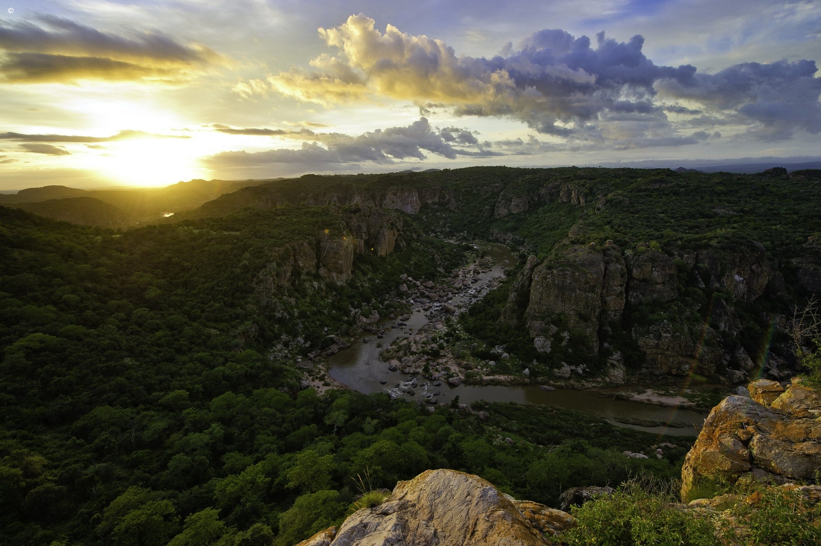 Located in the remote northern extreme of the Kruger, the landscape is spectacular and unlike anything seen further south, a real wilderness shared with just a couple of other lodges. The river is flanked by thick vegetation and enchanted fever tree forests, giving way to more arid bush and rocky kopjes topped with tumescent Mopane trees. The nearby Lanner Gorge is also an unexpected highlight.