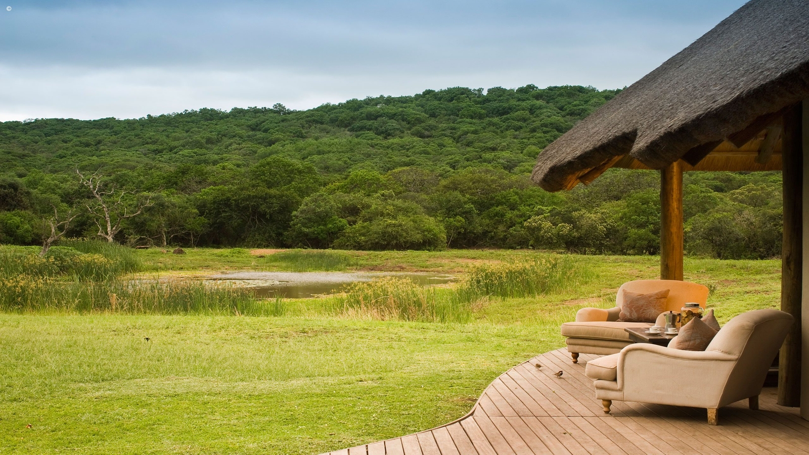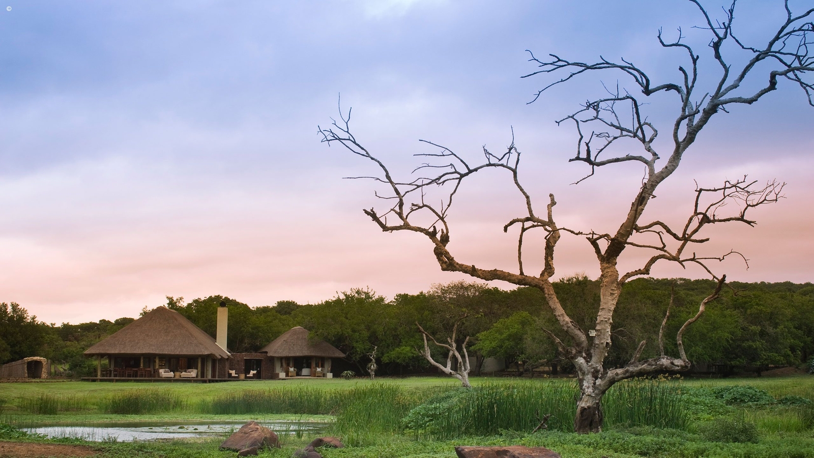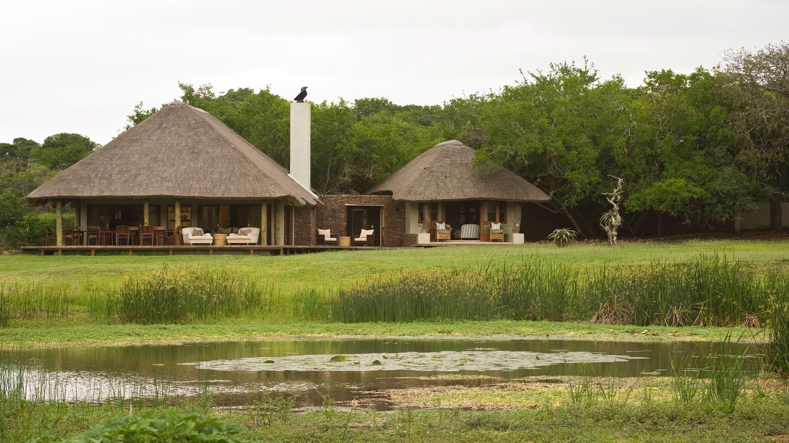 Set right next to a watering hole, the lodge is the perfect place from which to spot the wildlife of the reserve, which includes cheetahs (recently reintroduced to the region), lions, leopards, rhinos (black and white), and nyala antelopes.