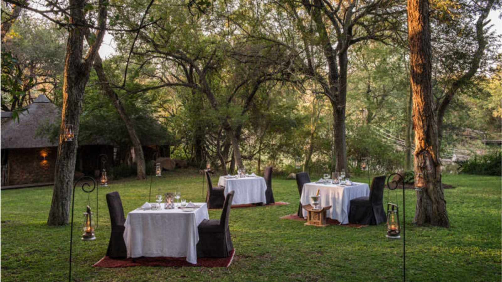 Dine under the ancient jackalberry tree where skilled chefs serve delicious Pan African meals, or steal away for a romantic candlelit dinner in the well-stocked wine cellar.
