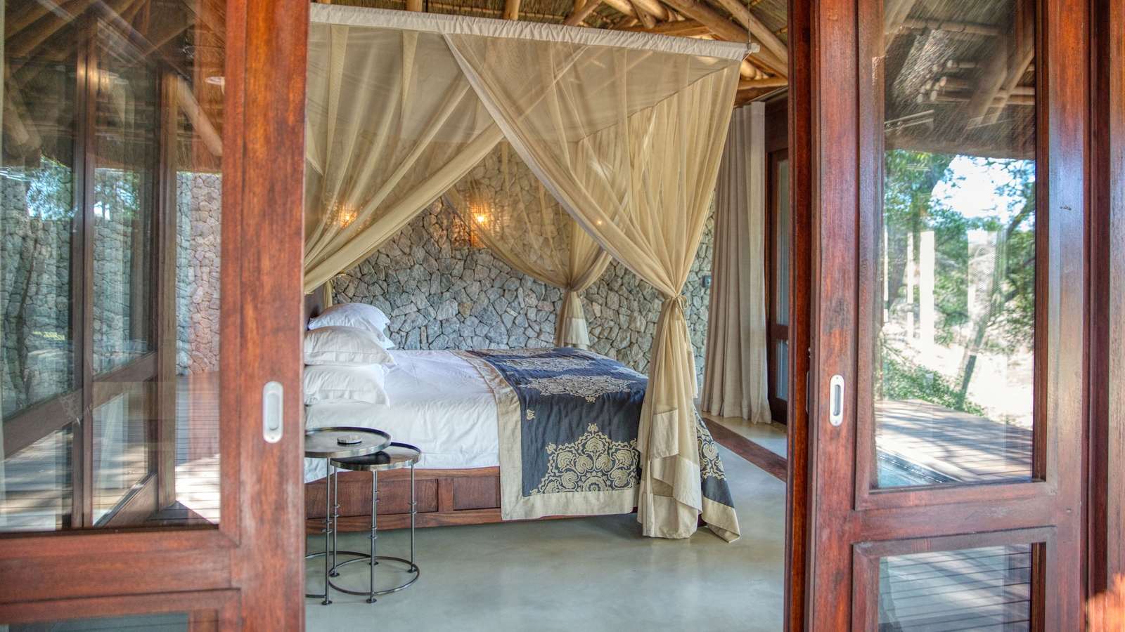 The accommodation here houses just eight people at a time with the suites discreetly separated from each other, ensuring peace and seclusion. Each suite also includes the impressive list of a private pool, fireplace, sitting room, spacious bathroom plus an outdoor shower.