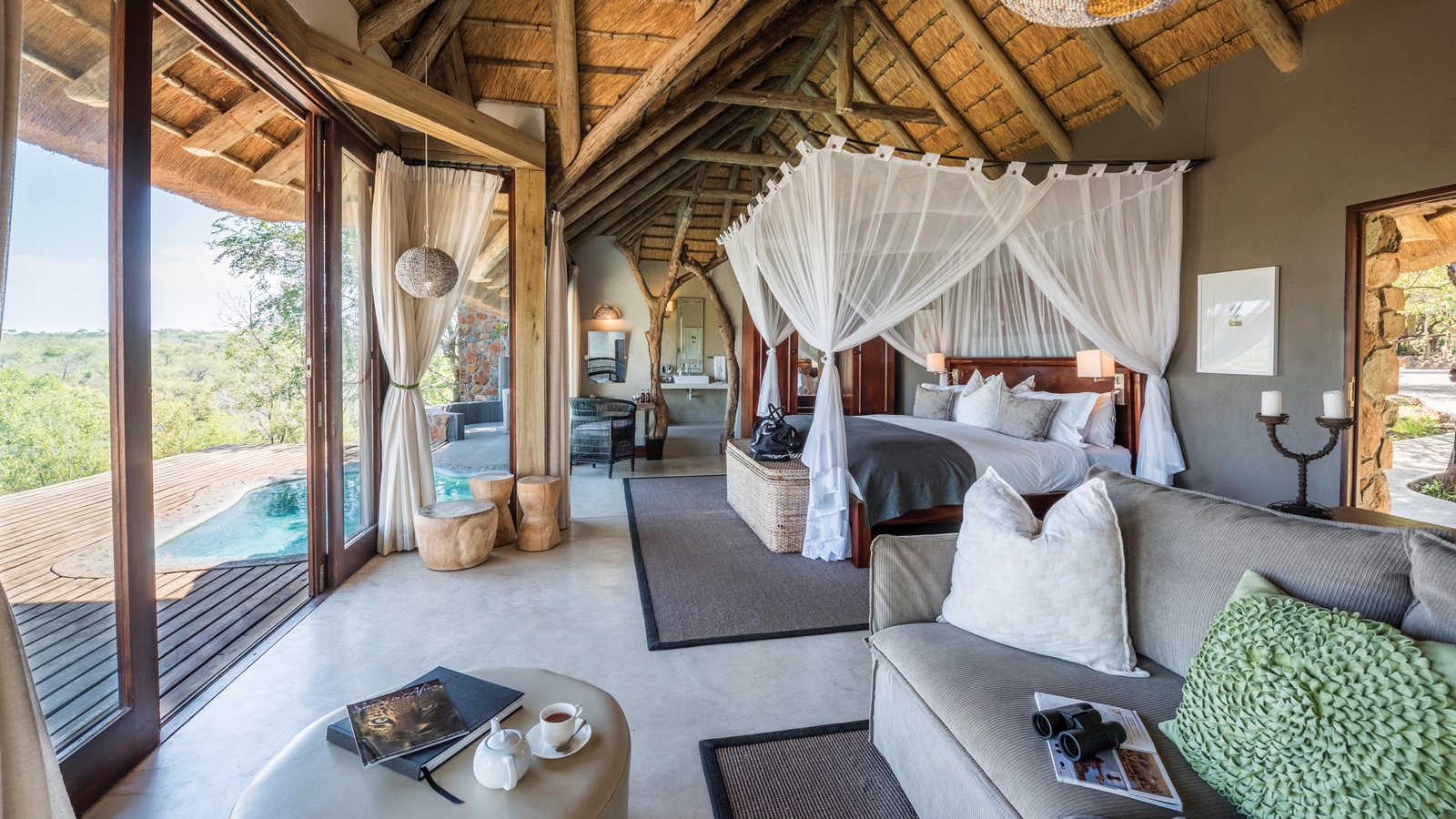 When you’re not out spotting the exciting game on your drives and walks, watch the animals from the pool and main deck with a pair of binoculars or the spotting scope. This tranquil spot is the perfect place to enjoy a sundowner or cool down with a crisp glass of wine as you take in the sights and sounds of the African bush.