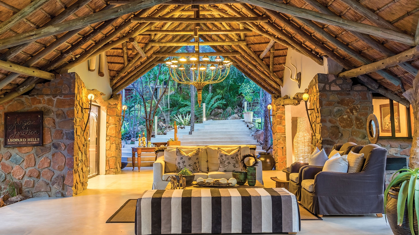 The elegant dining room offers further views alongside decadent meals, while a cosy lounge and massage sala provide even more sumptuous spots to relax. The library is a peaceful spot and guests are welcome to browse through the large selection of literature and African journals.