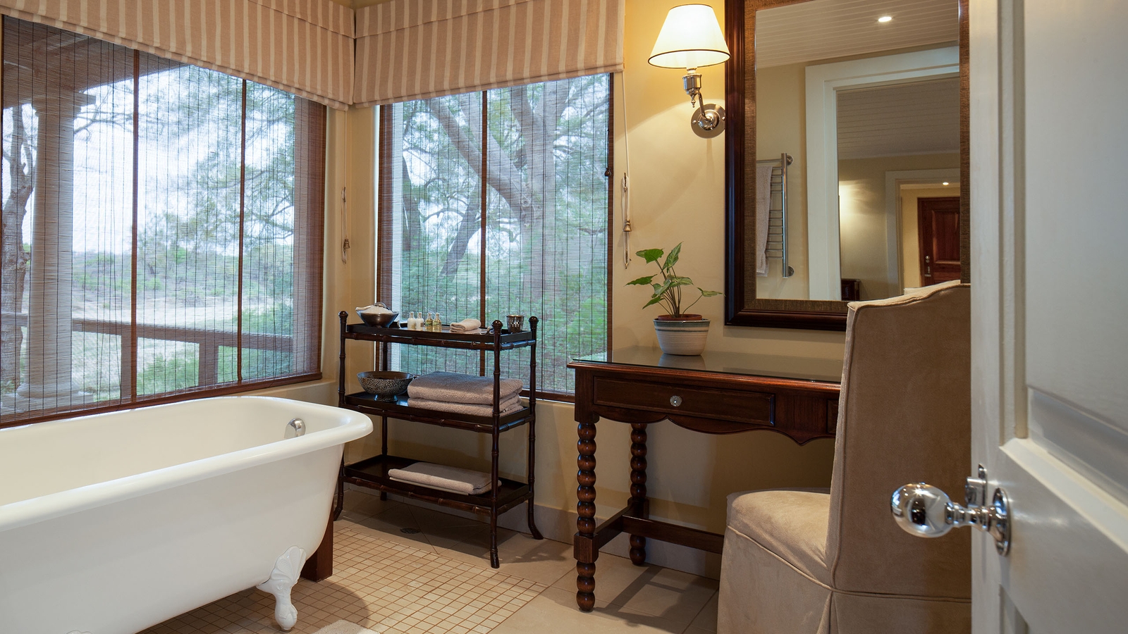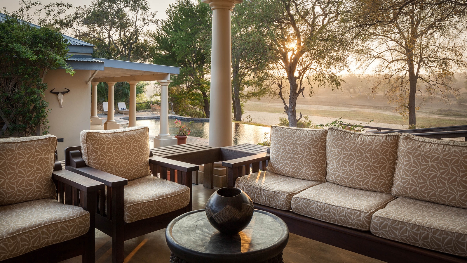 Eight ‘Khayas’ – Zulu for homes – function as completely private, luxury villas decorated in a colonial safari-style. Each enjoy a private heated plunge pool, secluded verandahs with grand river views and indigenous private gardens that are a haven for birds. The interiors feature hand-selected furnishings, lavish his-and-hers bathrooms with a ball and claw footed bath and outdoor showers.