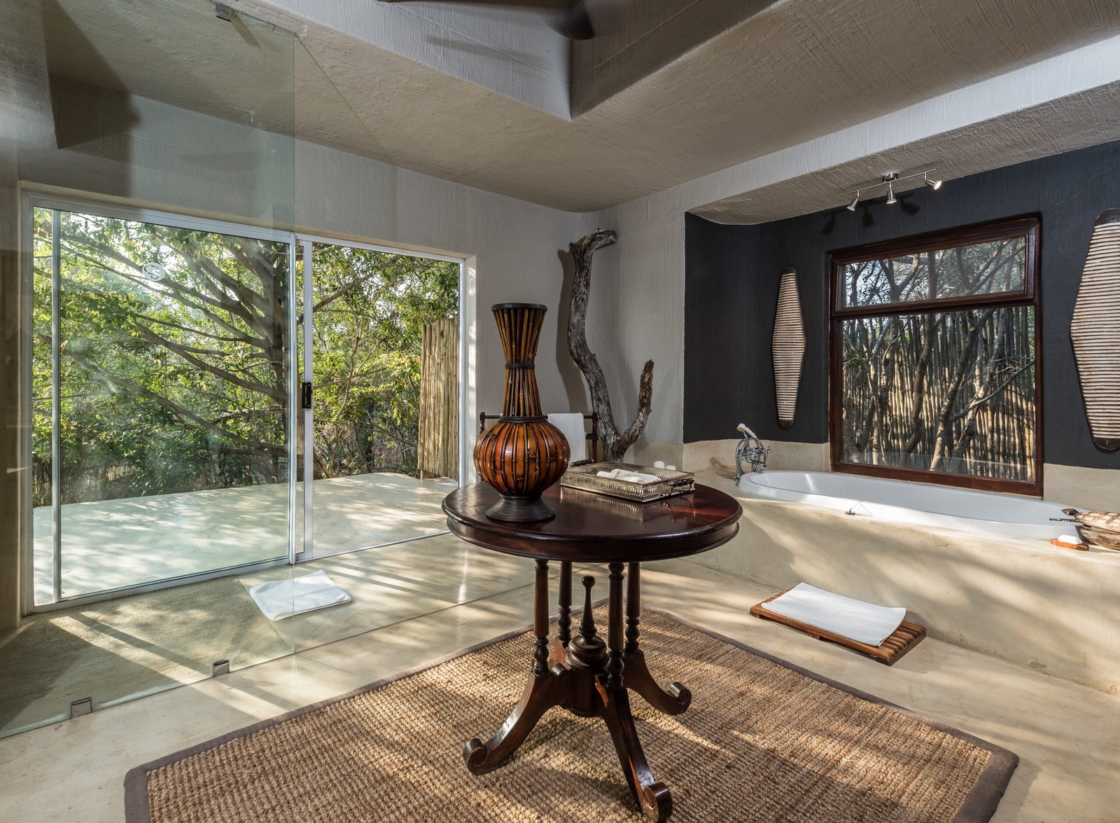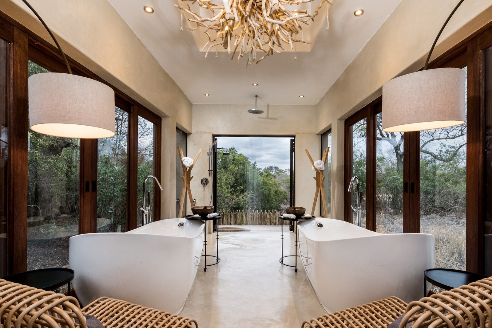 Featuring 25 suites in total including 2 Luxury Villas and the Mandleve Presidential Suite with each suite featuring en-suite bathrooms and al-fresco, glass-fronted showers, with wonderful views of the bushveld. The suites are air-conditioned and feature sumptuous linen and classic leather and wood furnishings.