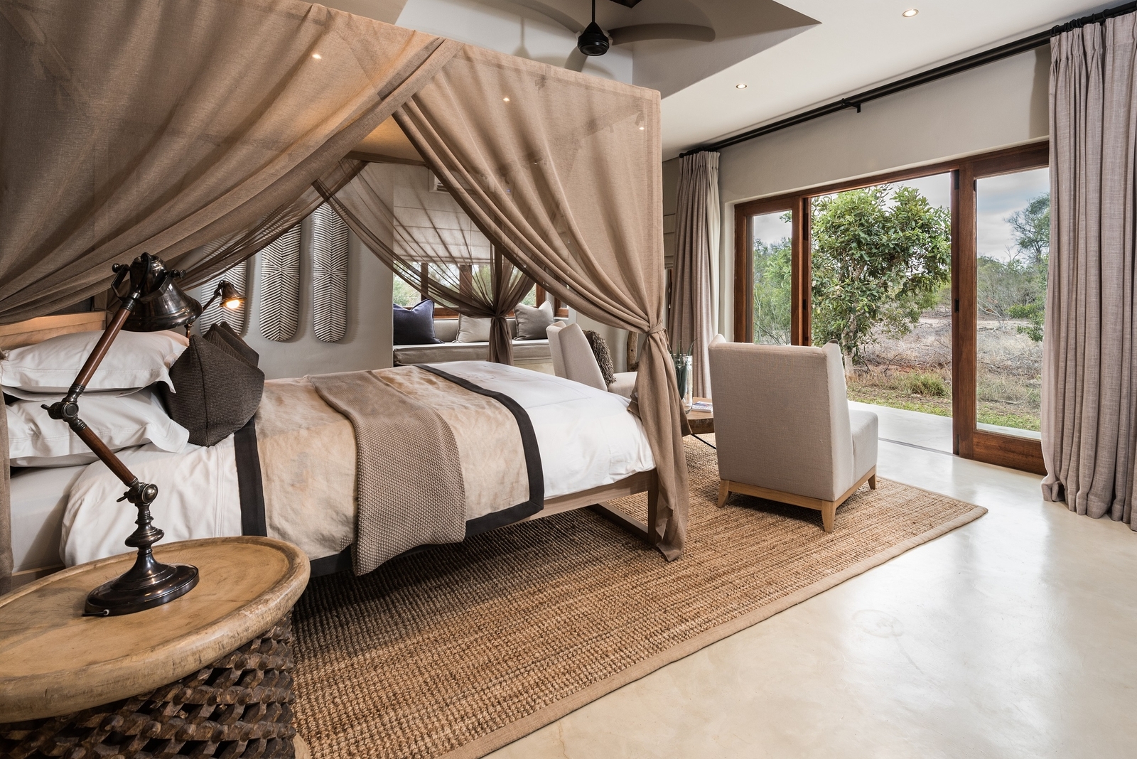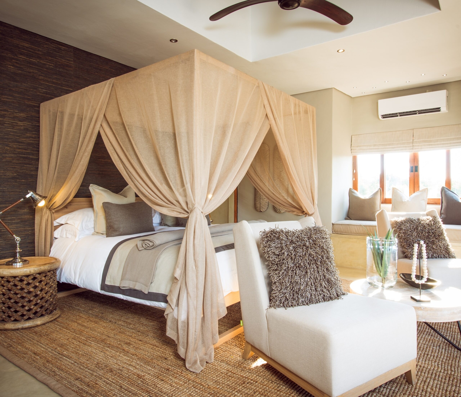 Featuring 25 suites in total including 2 Luxury Villas and the Mandleve Presidential Suite with each suite featuring en-suite bathrooms and al-fresco, glass-fronted showers, with wonderful views of the bushveld. The suites are air-conditioned and feature sumptuous linen and classic leather and wood furnishings.