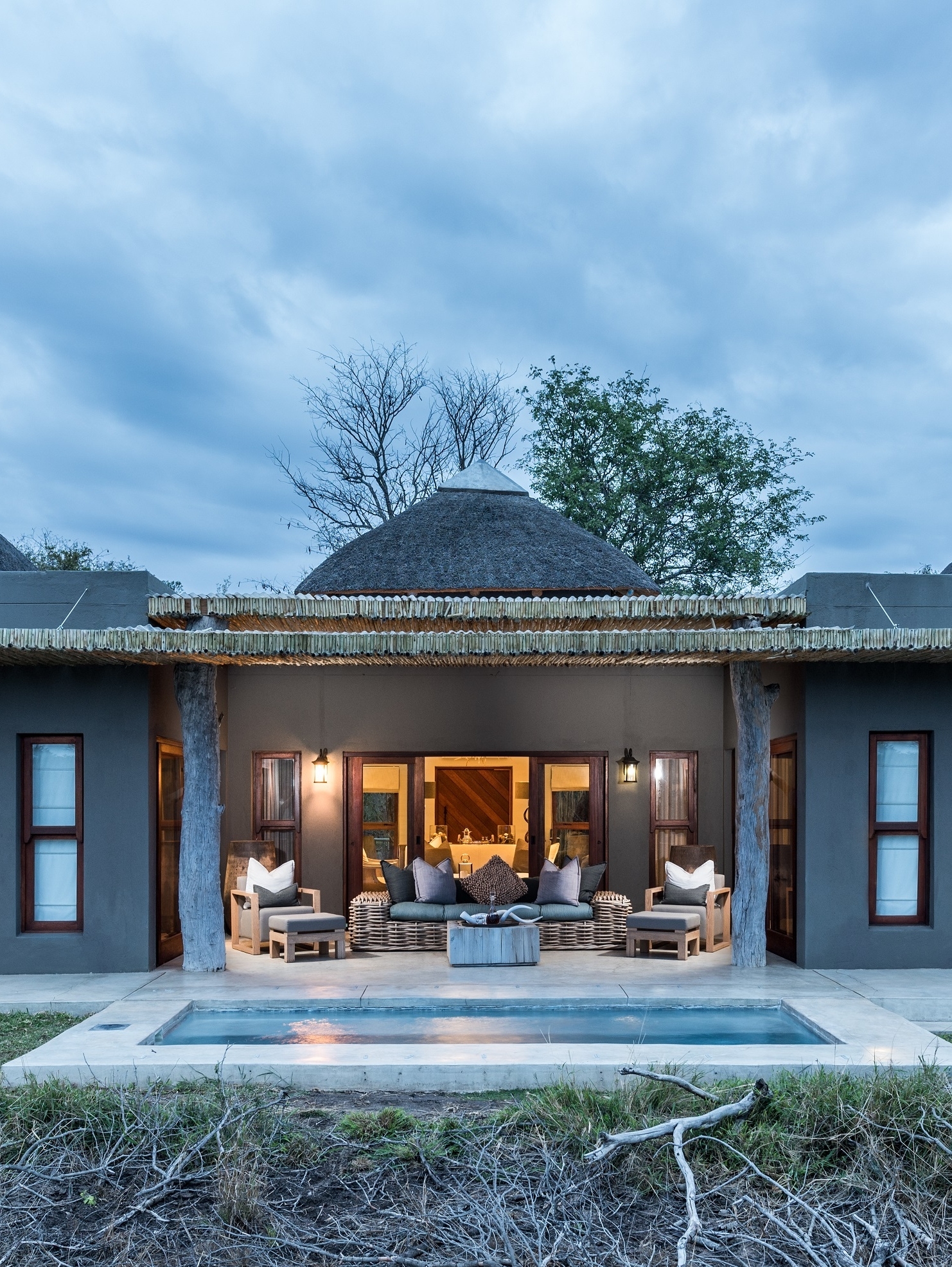 Two spacious Luxury Villas feature a master bedroom with en-suite bathroom, second en-suite bedroom, a private pool, library/lounge and beautiful patio facing a waterhole. The Mandleve Presidential Suite features a private plunge pool and luxurious interiors with endless views of the bush.