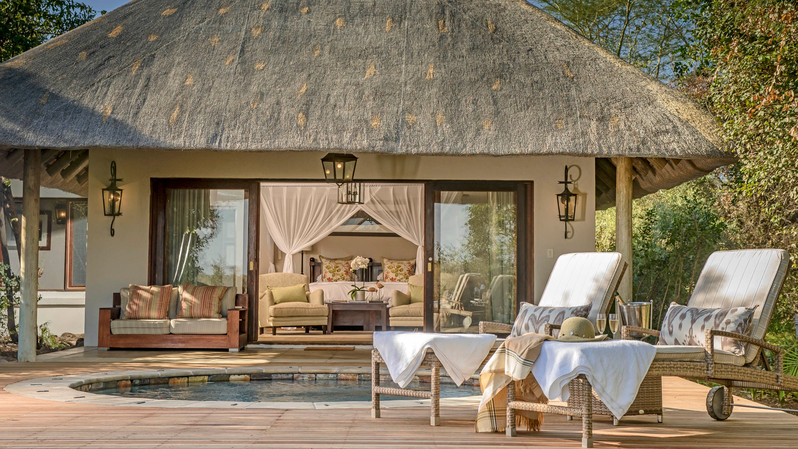 Savanna suite with two bedrooms, lounge, private plunge pool and private vehicle and guide