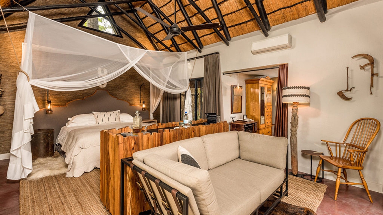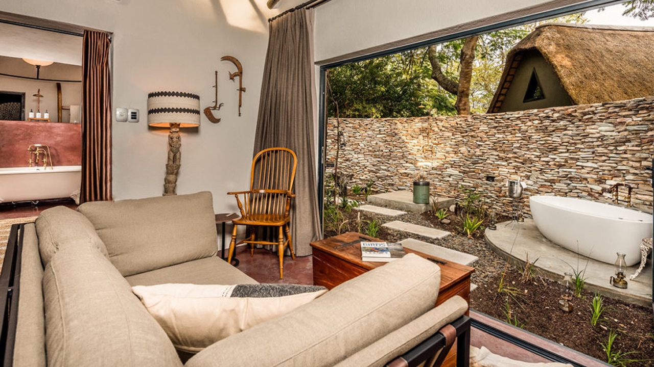 Each air-conditioned suite boasts a gorgeous en-suite bathroom and private alfresco shower nestled in the trees. In the communal areas you can lounge by the swimming pool, or relax on the wooden viewing decks and watch wildlife drinking at the nearby waterhole. The Ivory Presidential Suite is a favourite with a private terrace, plunge pool and its own homely fireplace.