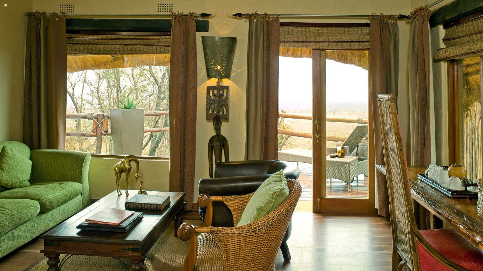 The main lodge easily has the best bar and open-sided lounge at Ulusaba with never-better sundowner views over a freshly made mojito. Guests can also savour a traditional meal on the wooden balcony, under the thick canopy of African stars.