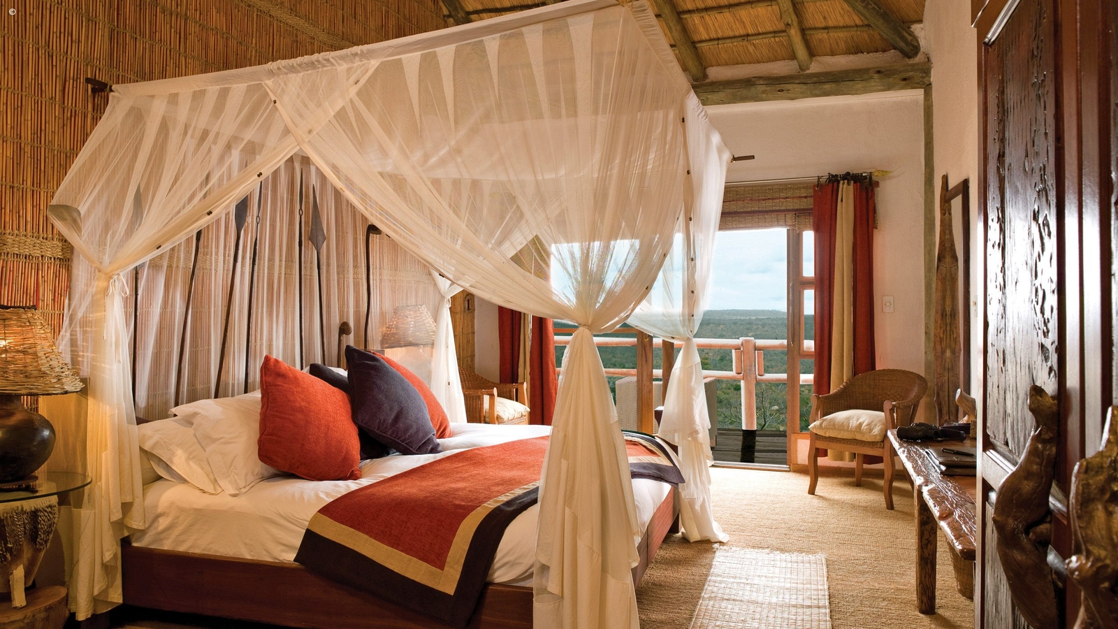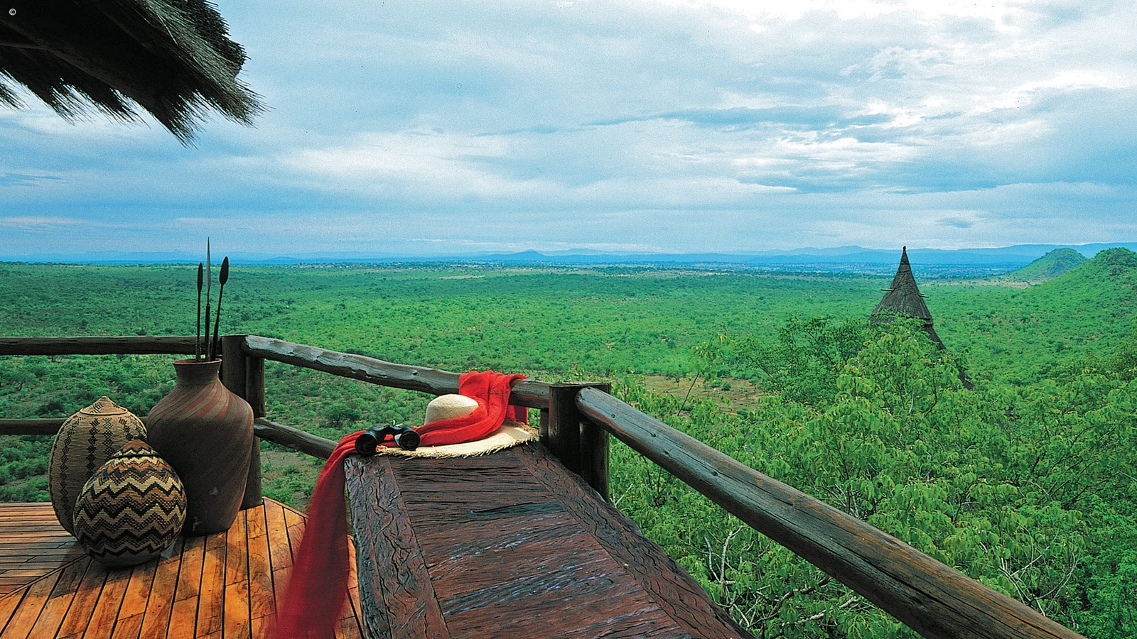 Quite grand when considering their seemingly impossible position, each room is styled to a traditional African tribe and with en-suite bathrooms via a spiral staircase. From this perched viewpoint, you can take in the panoramic vistas over the miles of bush and the Drakensberg Mountain range in the far distance.