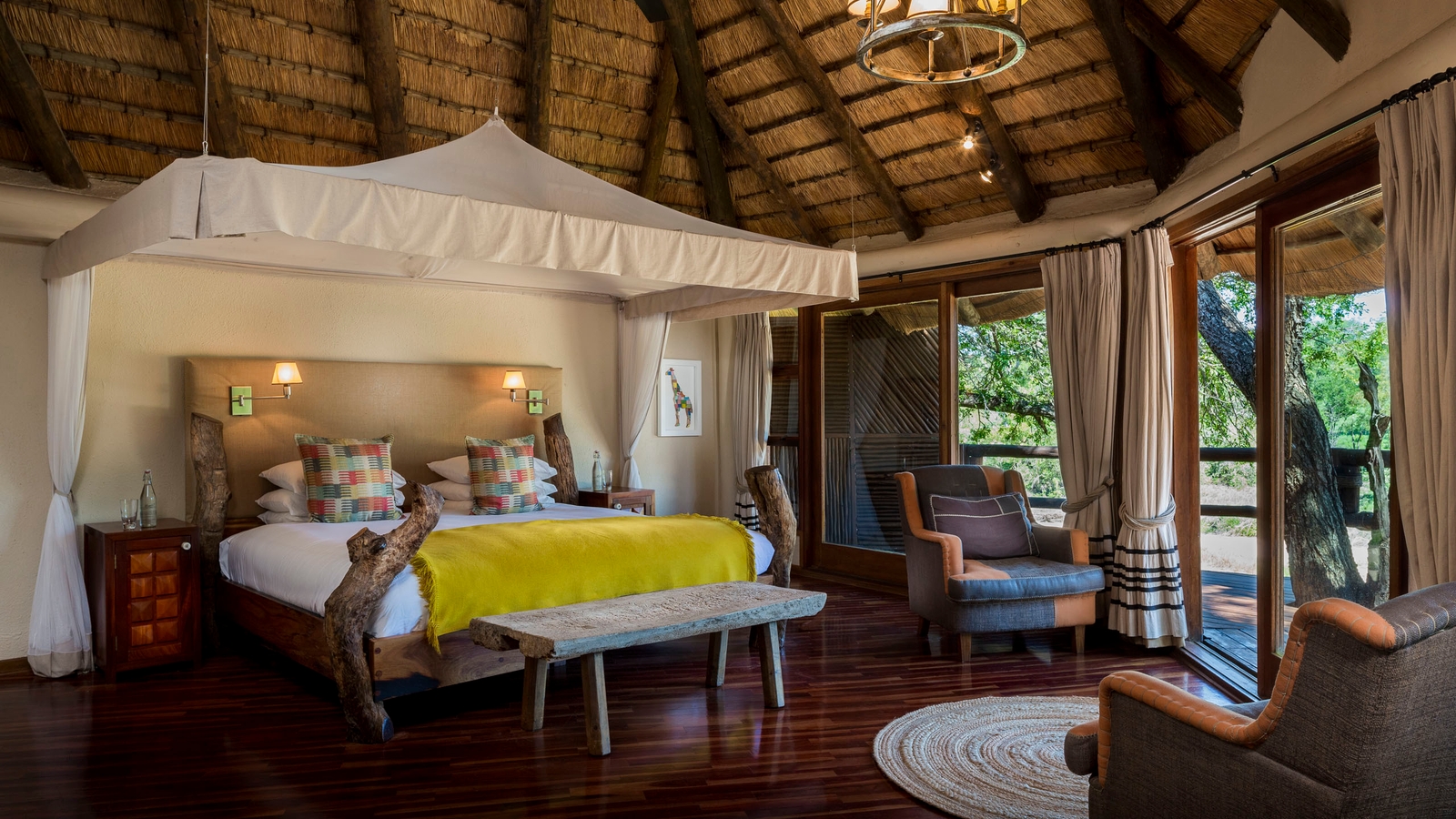 There’s also quite a grand main lodge at the centre filled with regional art, a sumptuous lounge and a fire-lit boma.