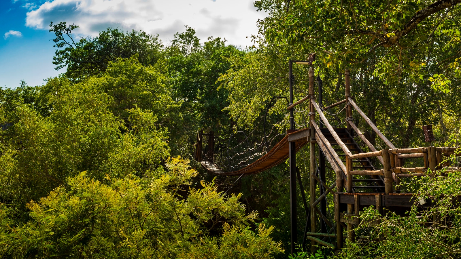Peaceful, Tree-House Style Suites linked by Roped Bridges