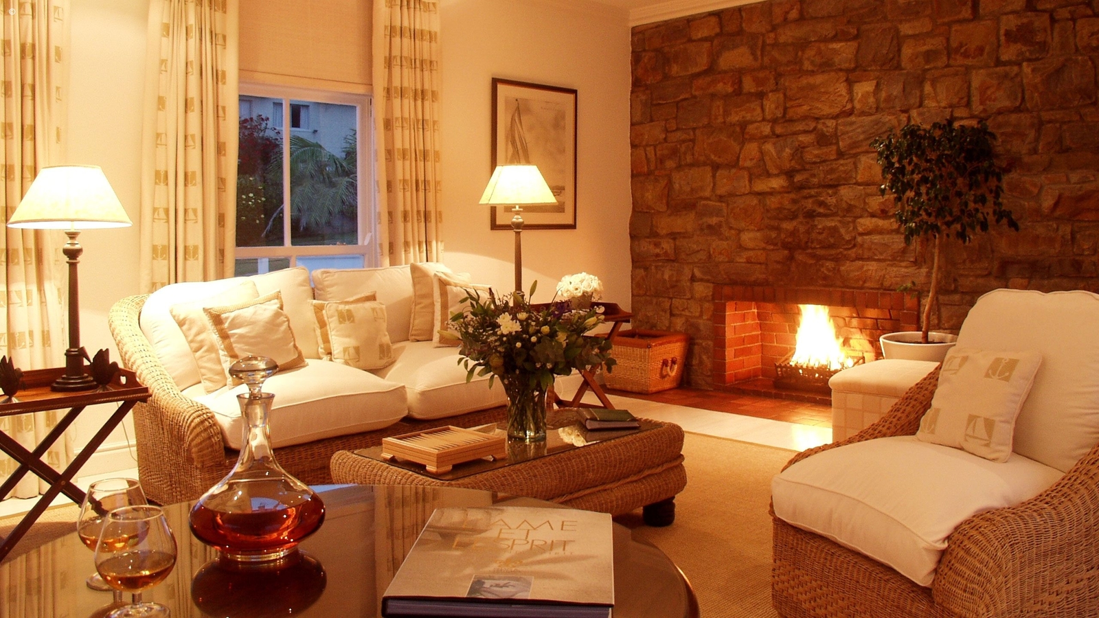 Large sitting room with a fireplace