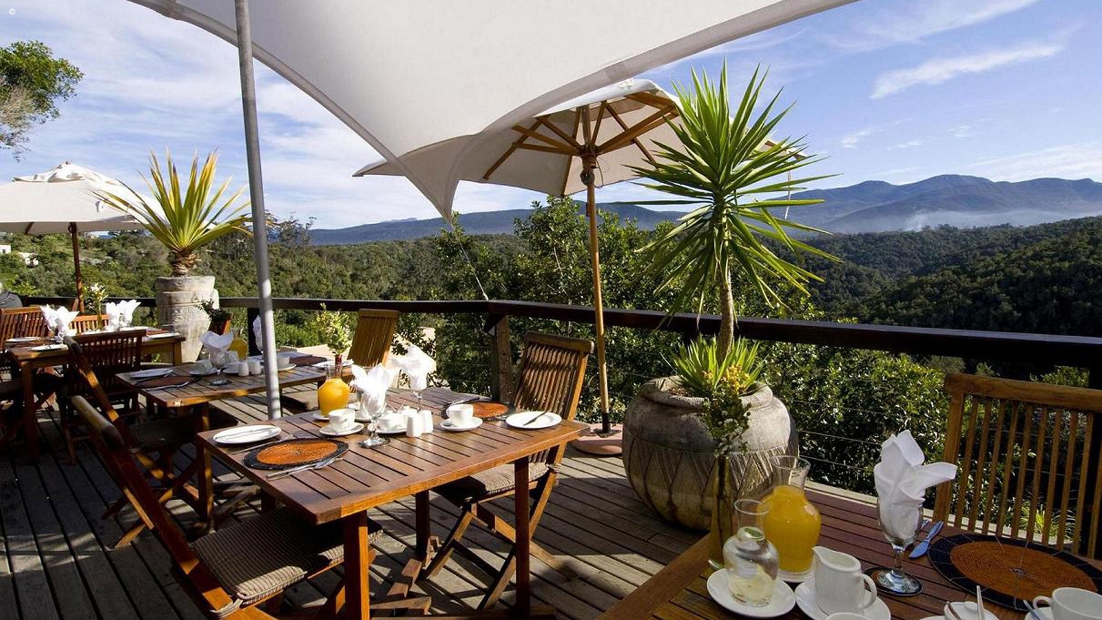 The 16 suites are situated in the garden, facing the main house. All come with king-sized beds (although twins are available) and are appointed in rustic earthy tones with simple, yet contemporary, furniture. Local hand-crafted art features throughout. There is also a three-bedroomed, two-storey villa available, which features a private infinity pool and extraordinary views over the valley and Tsitsikamma Mountains.